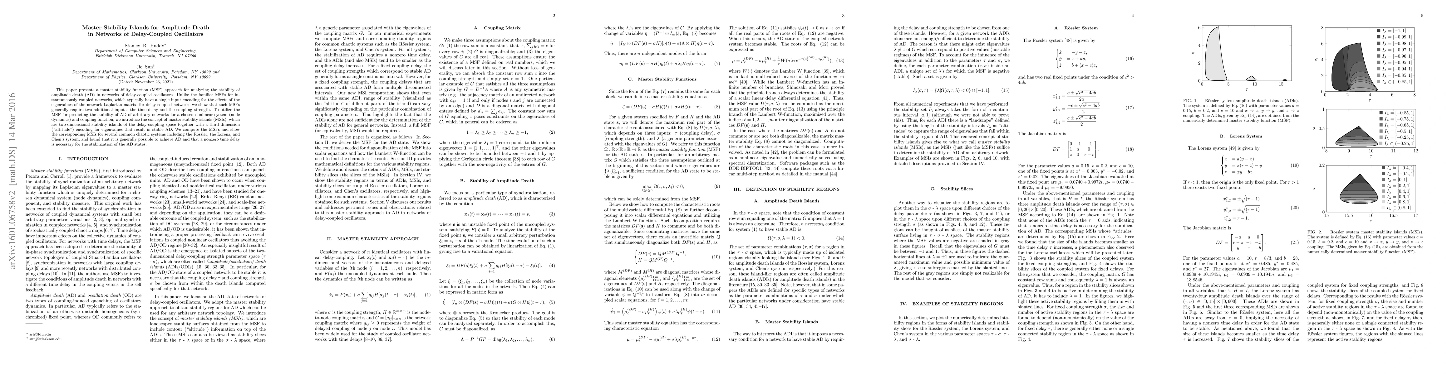 The paper introduces the concept of master stability islands (MSIs) for analyzing amplitude death in delay-coupled oscillator networks, extending the traditional master stability function (MSF) approach.