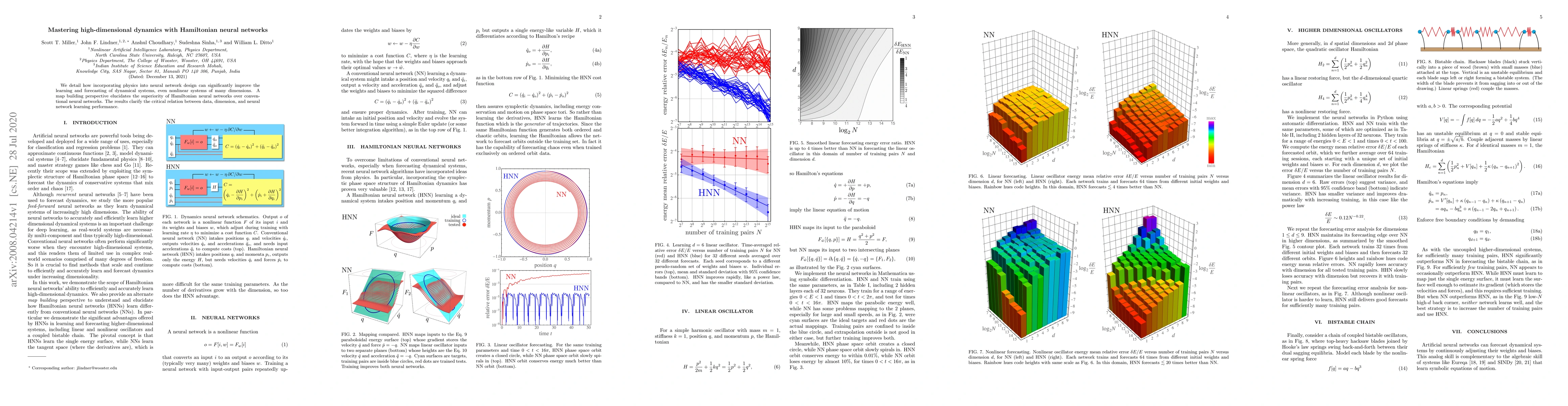 Summary: This paper demonstrates that Hamiltonian neural networks, which integrate physics principles, outperform conventional neural networks in learning and forecasting high-dimensional dynamical systems, highlighting the importance of the relationship between data dimensionality and neural network performance.