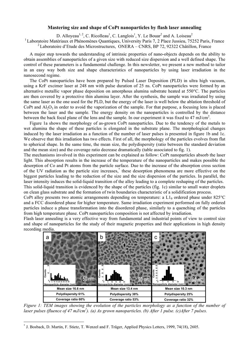 A major step towards the understanding of intrinsic properties of nano-objects depends on the ability to obtain assemblies of nanoparticles of a given size with reduced size dispersion and a well defined shape. The control of these parameters is a fundamental challenge. In this newsletter, we present a new method to tailor in an easy way both size and shape characteristics of nanoparticles by using laser irradiation in the nanosecond regime.