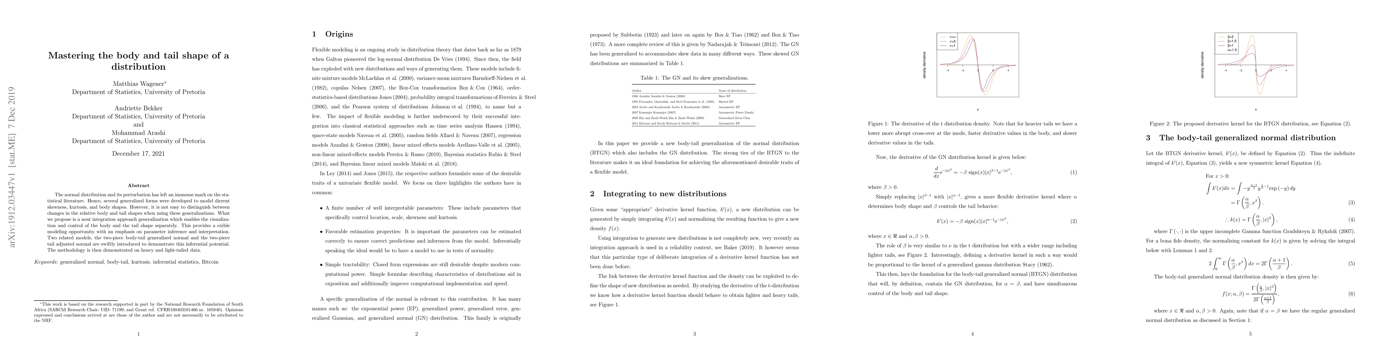The normal distribution and its perturbation has left an immense mark on the statistical literature. Hence, several generalized forms were developed to model different skewness, kurtosis, and body shapes. However, it is not easy to distinguish between changes in the relative body and tail shapes when using these generalizations. What we propose is a neat integration approach generalization which enables the visualization and control of the body and the tail shape separately. This provides a flexible modeling opportunity with an emphasis on parameter inference and interpretation. Two related models, the two-piece body-tail generalized normal and the two-piece tail adjusted normal are swiftly introduced to demonstrate this inferential potential. The methodology is then demonstrated on heavy and light-tailed data.