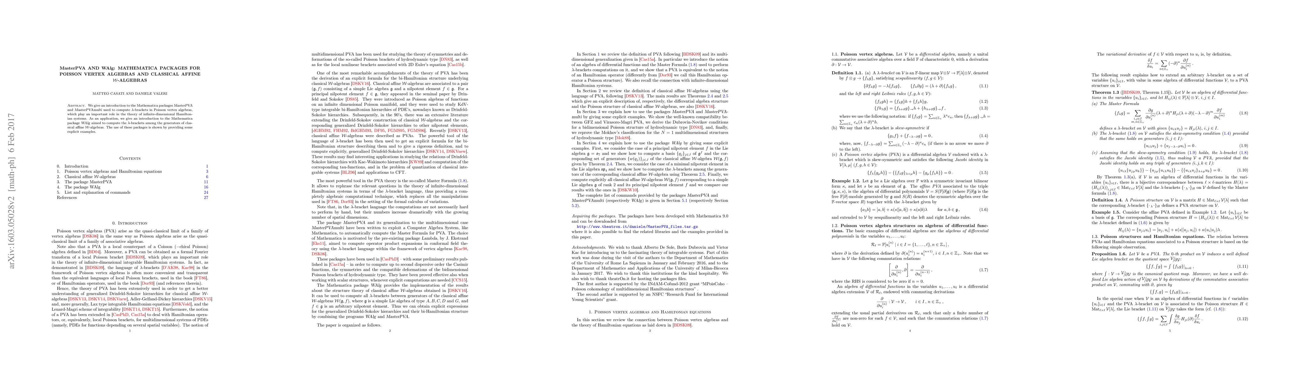 Two Mathematica packages, MasterPVA and WAlg, facilitate calculations of lambda-brackets in Poisson vertex algebras and classical affine $ ext{W}$-algebras, respectively, with applications to infinite-dimensional Hamiltonian systems.