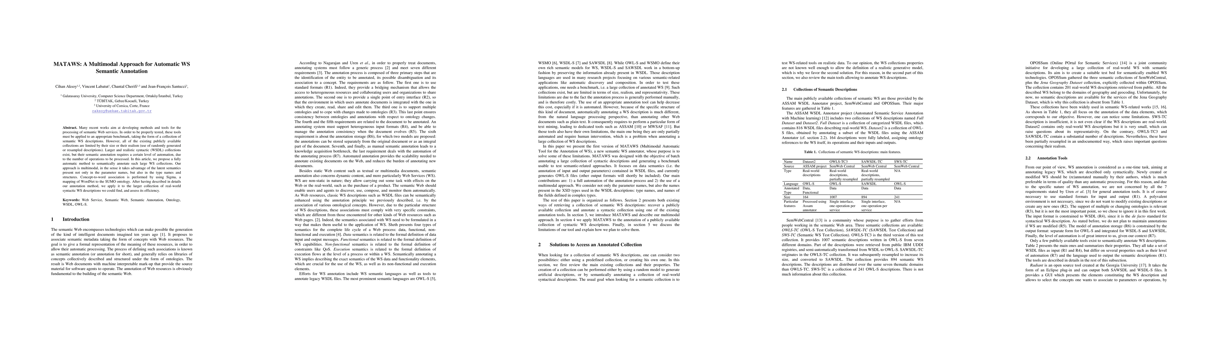 This paper proposes MATAWS, a fully automatic multimodal method for semantically annotating large collections of Web Service descriptions. It leverages latent semantics from parameter names, type names, and structures, utilizing Sigma for concept-to-word association, and demonstrates its efficiency on a large real-world dataset.