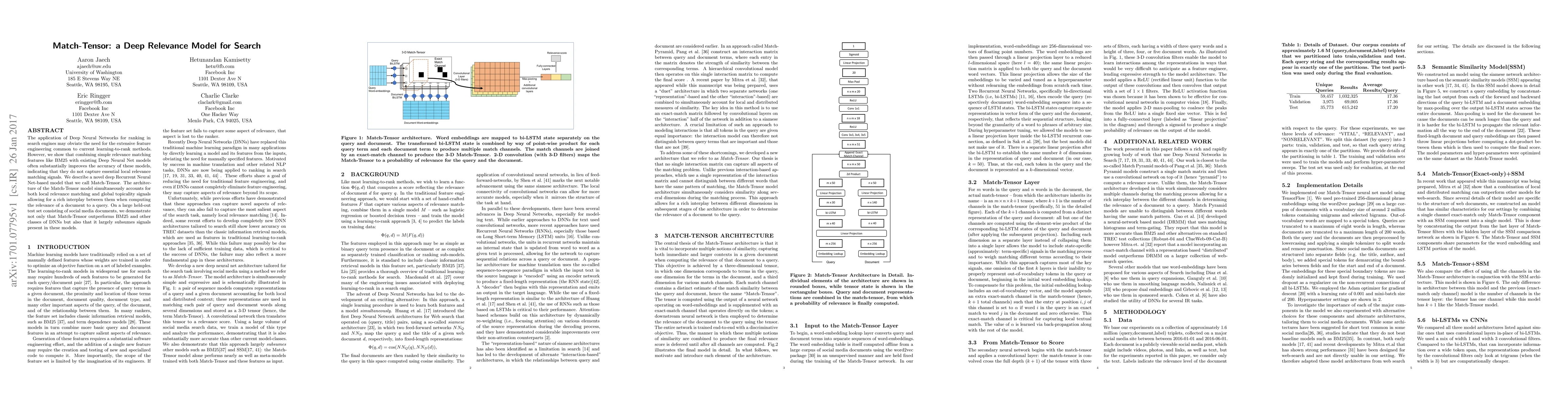 A new model called Match-Tensor improves search accuracy by combining local relevance matching signals with global topicality signals, outperforming existing Deep Neural Networks in ranking searches.