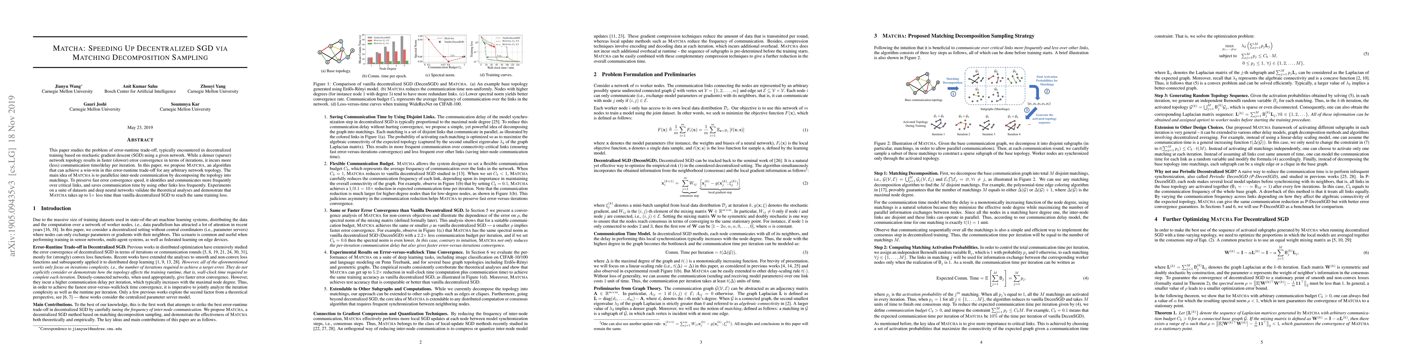 This paper studies the problem of error-runtime trade-off, typically encountered in decentralized training based on stochastic gradient descent (SGD) using a given network. While a denser (sparser) network topology results in faster (slower) error convergence in terms of iterations, it incurs more (less) communication time/delay per iteration. In this paper, we propose MATCHA, an algorithm that can achieve a win-win in this error-runtime trade-off for any arbitrary network topology. The main idea of MATCHA is to parallelize inter-node communication by decomposing the topology into matchings. To preserve fast error convergence speed, it identifies and communicates more frequently over critical links, and saves communication time by using other links less frequently. Experiments on a suite of datasets and deep neural networks validate the theoretical analyses and demonstrate that MATCHA takes up to $5\times$ less time than vanilla decentralized SGD to reach the same training loss.