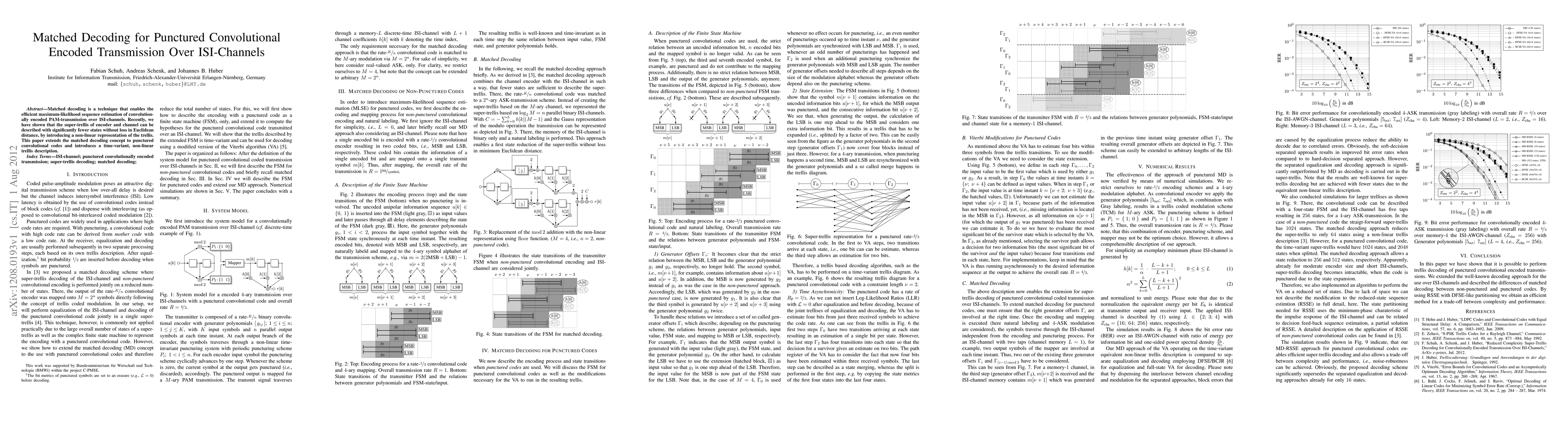This paper proposes matched decoding for punctured convolutional codes, enhancing the efficient maximum-likelihood sequence estimation over inter-symbol interference channels by introducing a time-variant, non-linear trellis representation that reduces the number of states without compromising Euclidean distance.