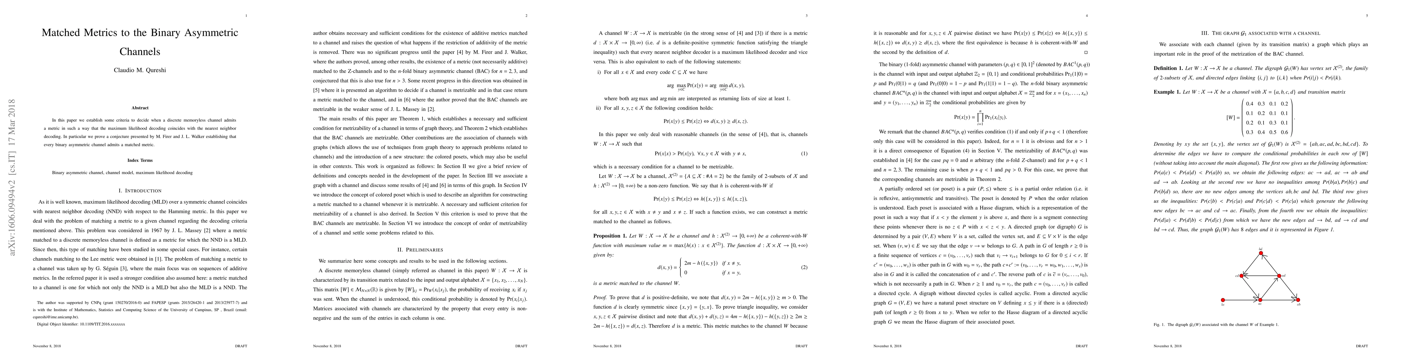 This paper proves that every binary asymmetric channel can be assigned a metric where maximum likelihood decoding aligns with nearest neighbor decoding, thus confirming a conjecture by M. Firer and J. L. Walker. The criteria established provide a framework for identifying such matched metrics.