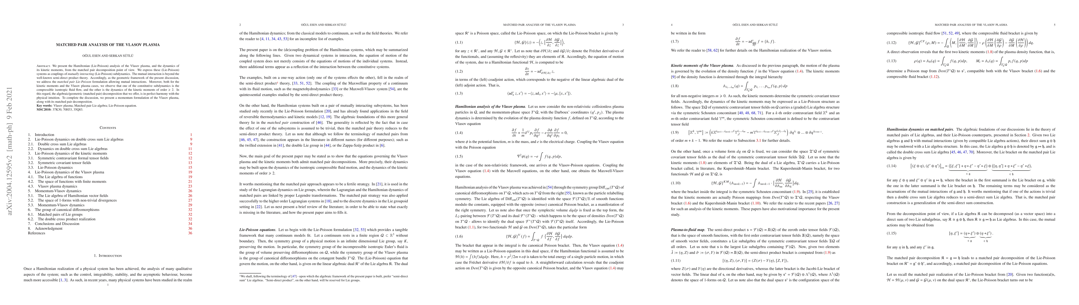 Researchers analyze the Vlasov plasma using matched pair Lie-Poisson formulation, revealing a compressible isentropic fluid flow and dynamics of kinetic moments of order $ eq 2$.