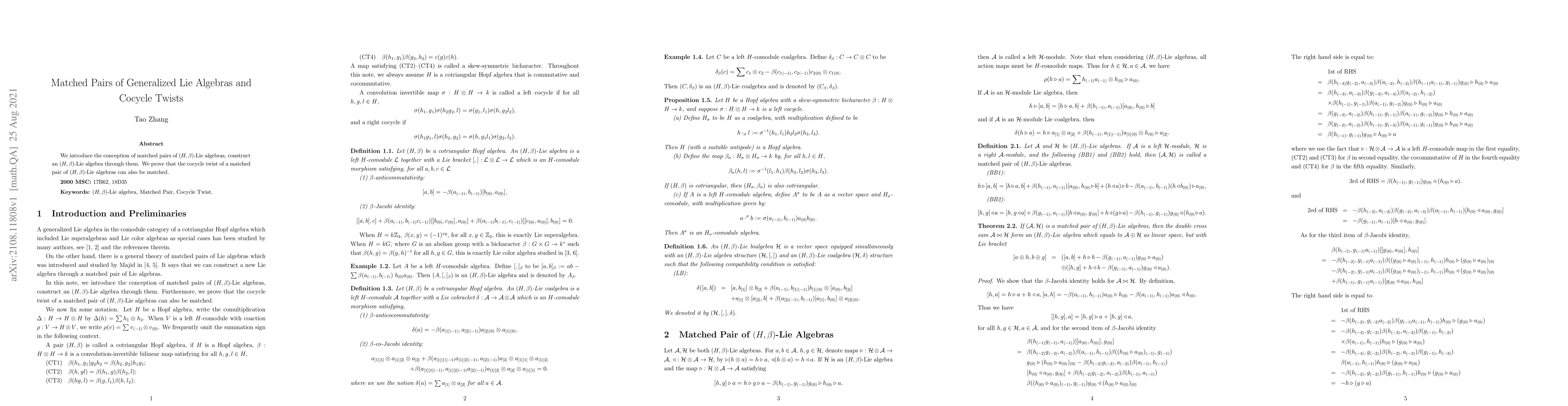 Summary: This paper introduces the concept of matched pairs of $(H, \beta)$-Lie algebras and constructs an $(H, \beta)$-Lie algebra from these pairs. It demonstrates that the cocycle twist of a matched pair of $(H, \beta)$-Lie algebras retains the matched pair structure.
