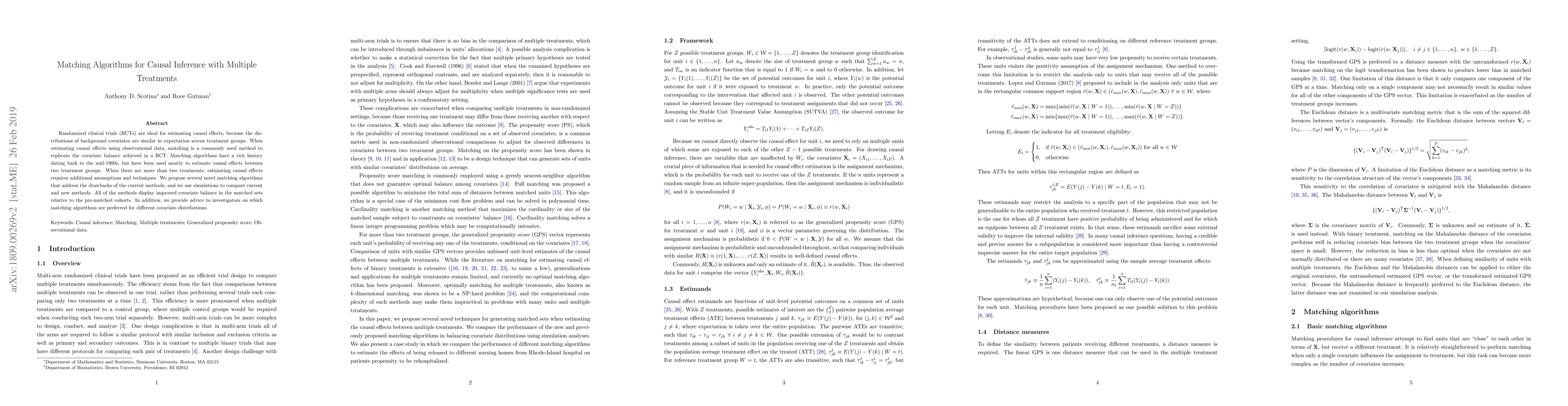 This paper proposes new matching algorithms for causal inference in observational studies with multiple treatment groups, addressing limitations of existing methods. Simulation results show improved covariate balance and provide guidance on selecting the best algorithms for different covariate distributions.