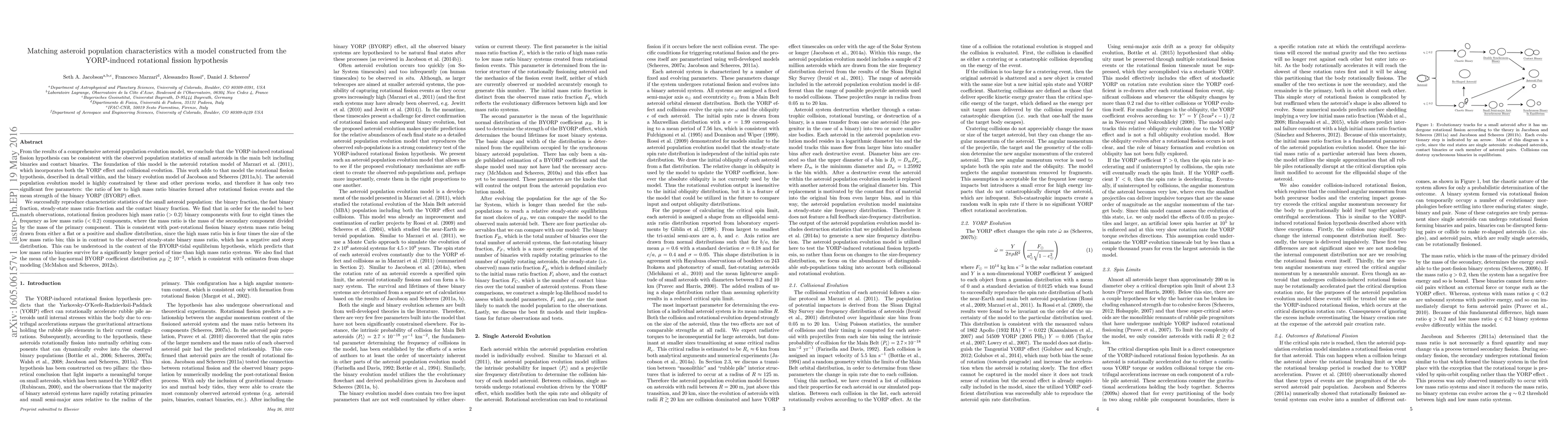 From the results of a comprehensive asteroid population evolution model, we conclude that the YORP-induced rotational fission hypothesis can be consistent with the observed population statistics of small asteroids in the main belt including binaries and contact binaries. The foundation of this model is the asteroid rotation model of Marzari et al. (2011), which incorporates both the YORP effect and collisional evolution. This work adds to that model the rotational fission hypothesis and the binary evolution model of Jacobson & Scheeres (2011). The asteroid population evolution model is highly constrained by these and other previous works, and therefore it has only two significant free parameters: the ratio of low to high mass ratio binaries formed after rotational fission events and the mean strength of the binary YORP (BYORP) effect. We successfully reproduce characteristic statistics of the small asteroid population: the binary fraction, the fast binary fraction, steady-state mass ratio fraction and the contact binary fraction. We find that in order for the model to best match observations, rotational fission produces high mass ratio ($> 0.2$) binary components with four to eight times the frequency as low mass ratio ($< 0.2$) components, where the mass ratio is the mass of the secondary component divided by the mass of the primary component. This is consistent with post-rotational fission binary system mass ratio being drawn from either a flat or a positive and shallow distribution, since the high mass ratio bin is four times the size of the low mass ratio bin; this is in contrast to the observed steady-state binary mass ratio, which has a negative and steep distribution. This can be understood in the context of the BYORP-tidal equilibrium hypothesis, which predicts that low mass ratio binaries survive for a significantly longer period of time than high mass ratio systems.