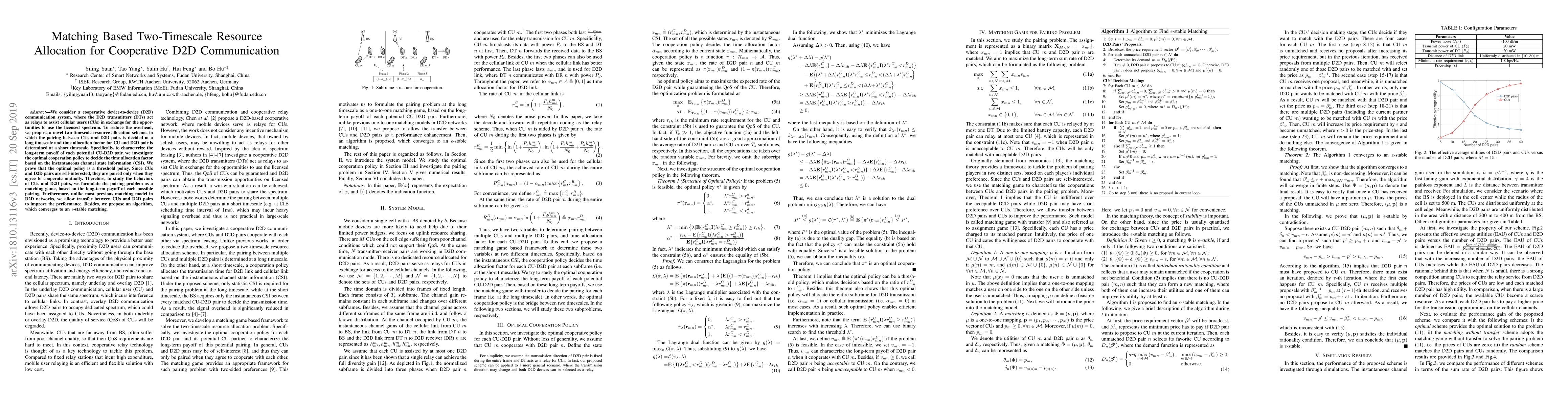 This paper proposes a two-timescale resource allocation scheme for cooperative D2D communication to reduce overhead, and shows that the optimal policy is a threshold policy that converges to an epsilon-stable matching.