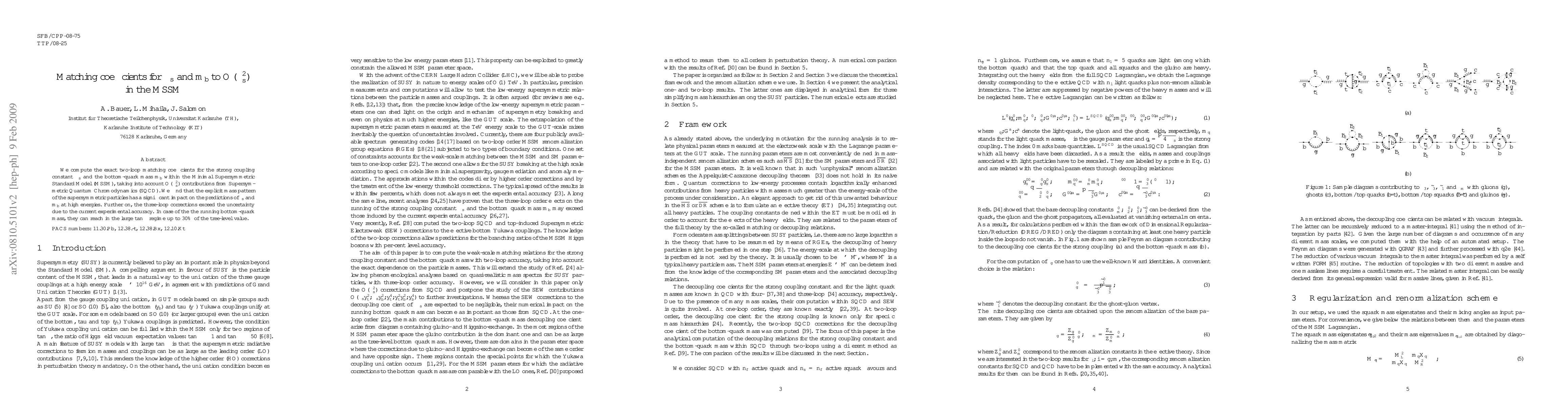 This paper calculates the exact two-loop matching coefficients for the strong coupling alpha_s and bottom-quark mass m_b in the MSSM, including O(alpha_s^2) contributions from SQCD. It finds that the mass pattern of supersymmetric particles significantly affects predictions at high energies, with three-loop corrections potentially reaching up to 30% of the tree-level bottom-quark mass value in the large tan(beta) regime.