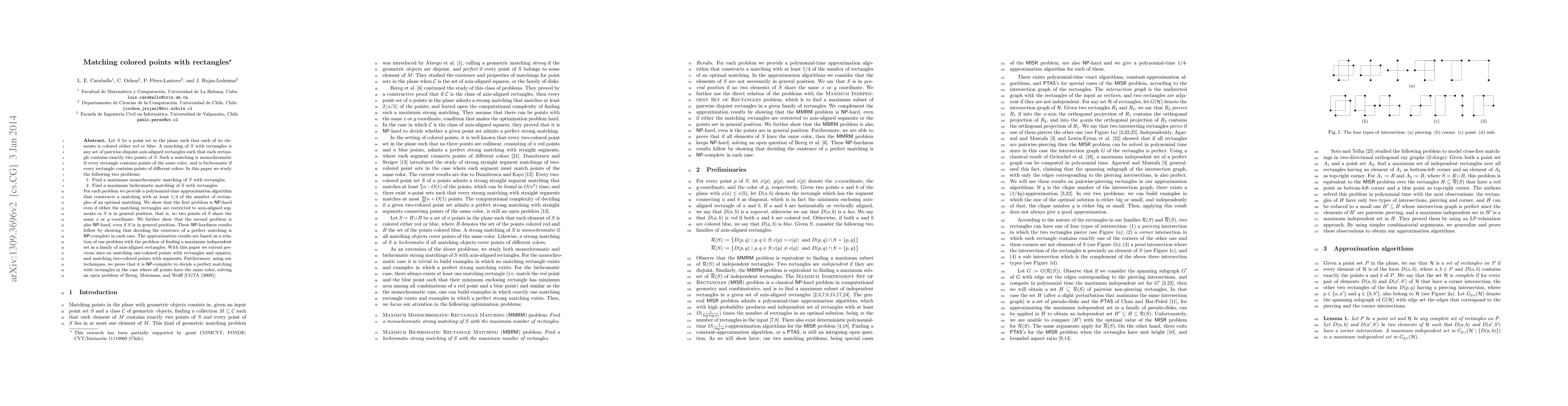 Let $S$ be a point set in the plane such that each of its elements is colored either red or blue. A matching of $S$ with rectangles is any set of pairwise-disjoint axis-aligned rectangles such that each rectangle contains exactly two points of $S$. Such a matching is monochromatic if every rectangle contains points of the same color, and is bichromatic if every rectangle contains points of different colors. In this paper we study the following two problems: 1. Find a maximum monochromatic matching of $S$ with rectangles. 2. Find a maximum bichromatic matching of $S$ with rectangles. For each problem we provide a polynomial-time approximation algorithm that constructs a matching with at least $1/4$ of the number of rectangles of an optimal matching. We show that the first problem is $\mathsf{NP}$-hard even if either the matching rectangles are restricted to axis-aligned segments or $S$ is in general position, that is, no two points of $S$ share the same $x$ or $y$ coordinate. We further show that the second problem is also $\mathsf{NP}$-hard, even if $S$ is in general position. These $\mathsf{NP}$-hardness results follow by showing that deciding the existence of a perfect matching is $\mathsf{NP}$-complete in each case. The approximation results are based on a relation of our problem with the problem of finding a maximum independent set in a family of axis-aligned rectangles. With this paper we extend previous ones on matching one-colored points with rectangles and squares, and matching two-colored points with segments. Furthermore, using our techniques, we prove that it is $\mathsf{NP}$-complete to decide a perfect matching with rectangles in the case where all points have the same color, solving an open problem of Bereg, Mutsanas, and Wolff [CGTA (2009)].