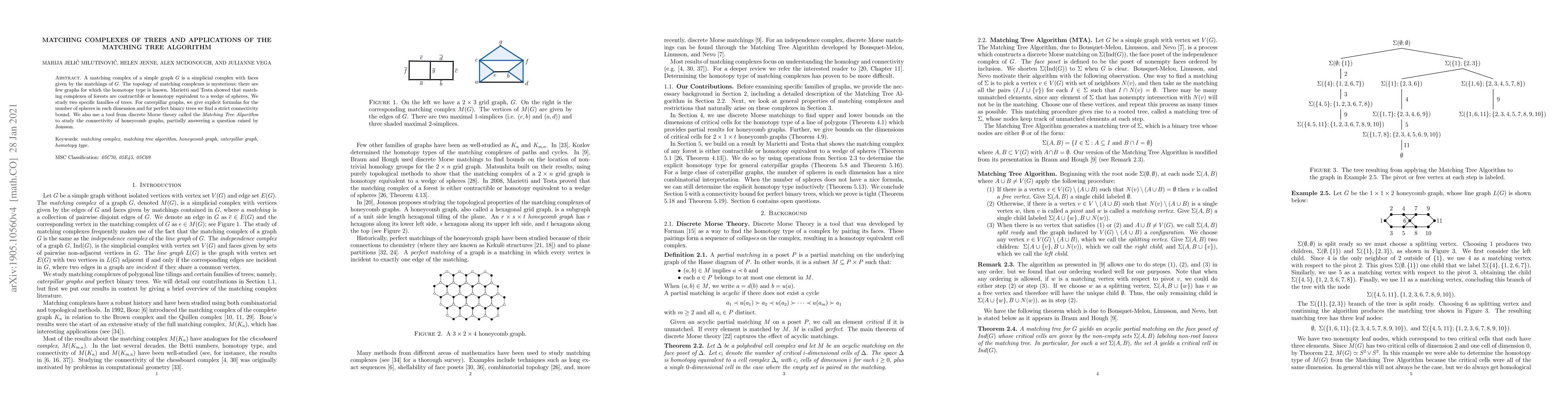 This paper explores the topology of matching complexes of specific tree families, providing explicit formulas for caterpillar graphs and connectivity bounds for perfect binary trees. It also applies the Matching Tree Algorithm from discrete Morse theory to investigate the connectivity of honeycomb graphs, contributing to the understanding of their topological properties.