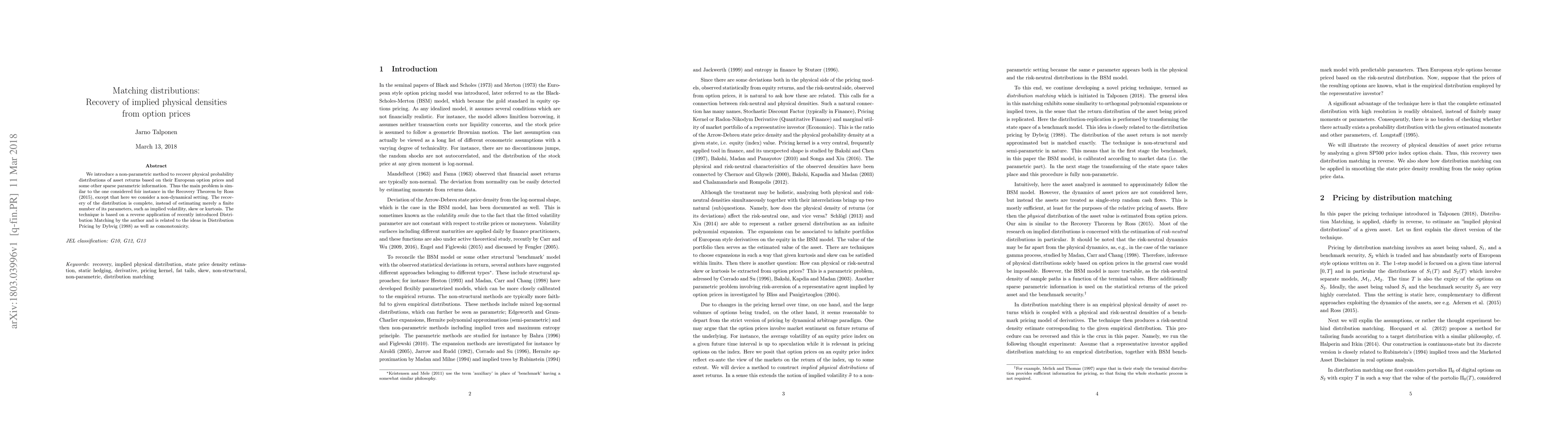 We introduce a non-parametric method to recover physical probability distributions of asset returns based on their European option prices and some other sparse parametric information. Thus the main problem is similar to the one considered foir instance in the Recovery Theorem by Ross (2015), except that here we consider a non-dynamical setting. The recovery of the distribution is complete, instead of estimating merely a finite number of its parameters, such as implied volatility, skew or kurtosis. The technique is based on a reverse application of recently introduced Distribution Matching by the author and is related to the ideas in Distribution Pricing by Dybvig (1988) as well as comonotonicity.