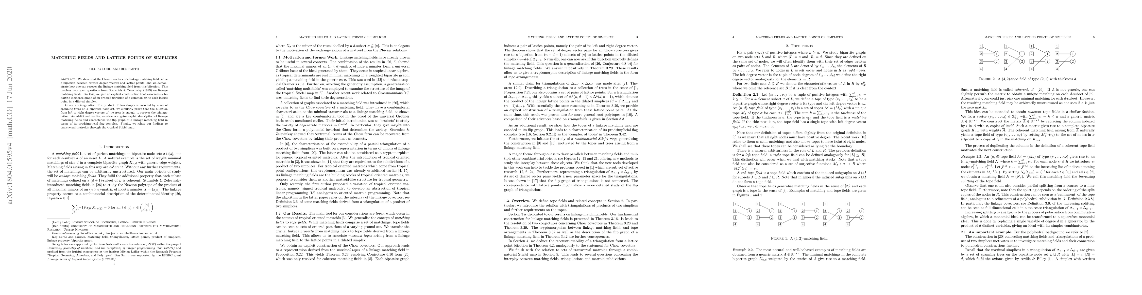 We show that the Chow covectors of a linkage matching field define a bijection between certain degree vectors and lattice points, and we demonstrate how one can recover the linkage matching field from this bijection. This resolves two open questions from Sturmfels and Zelevinsky (1993) on linkage matching fields. For this, we give an explicit construction that associates a bipartite incidence graph of an ordered partition of a common set to each lattice point in a dilated simplex. Given a triangulation of a product of two simplices encoded by a set of spanning trees on a bipartite node set, we similarly prove that the bijection from left to right degree vectors of the trees is enough to recover the triangulation. As additional results, we show a cryptomorphic description of linkage matching fields and characterise the flip graph of a linkage matching field in terms of its prodsimplicial flag complex. Finally, we relate our findings to transversal matroids through the tropical Stiefel map.