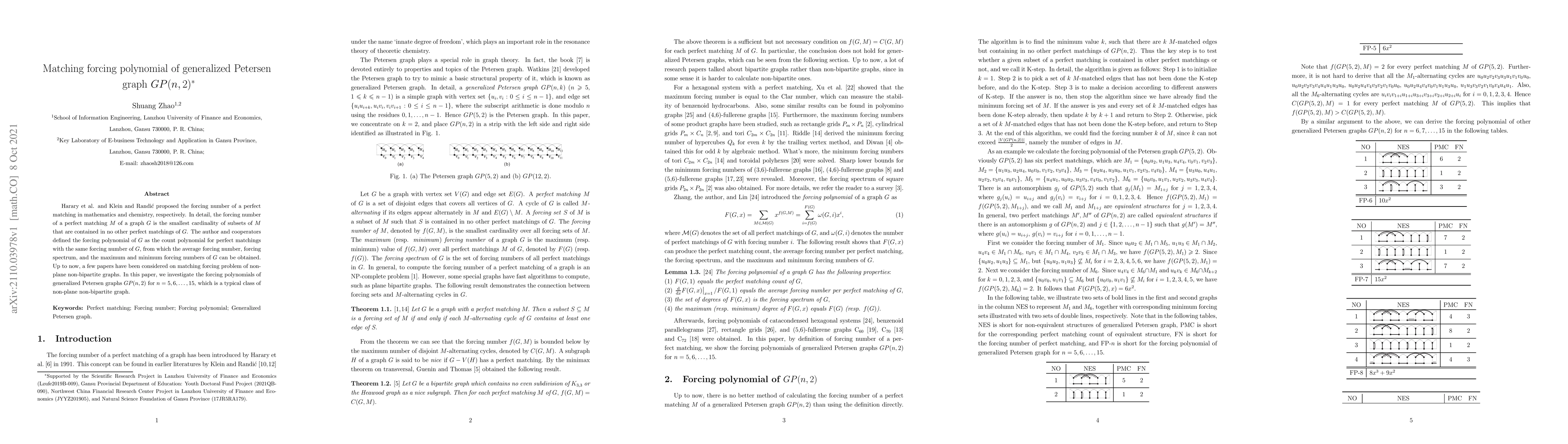 This paper explores the matching forcing polynomial of generalized Petersen graphs GP(n, 2) for n ranging from 5 to 15. It aims to determine the smallest cardinality of subsets of perfect matchings that are unique to a given matching, extending previous research on matching forcing in non-plane non-bipartite graphs.