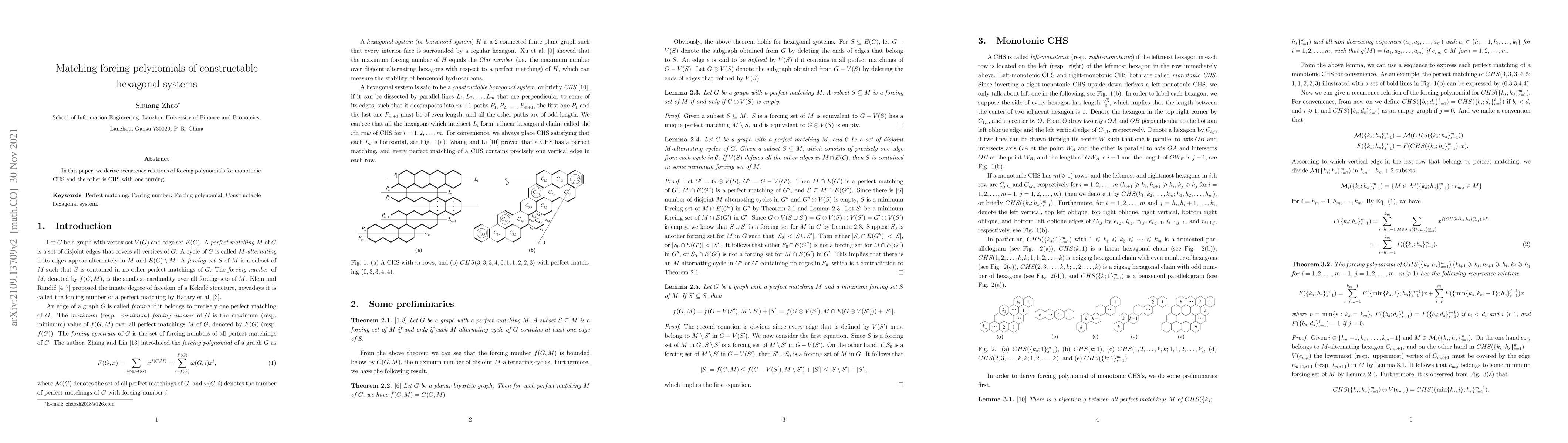 In this paper, we derive recurrence relations of forcing polynomials for monotonic CHS and the other is CHS with one turning.