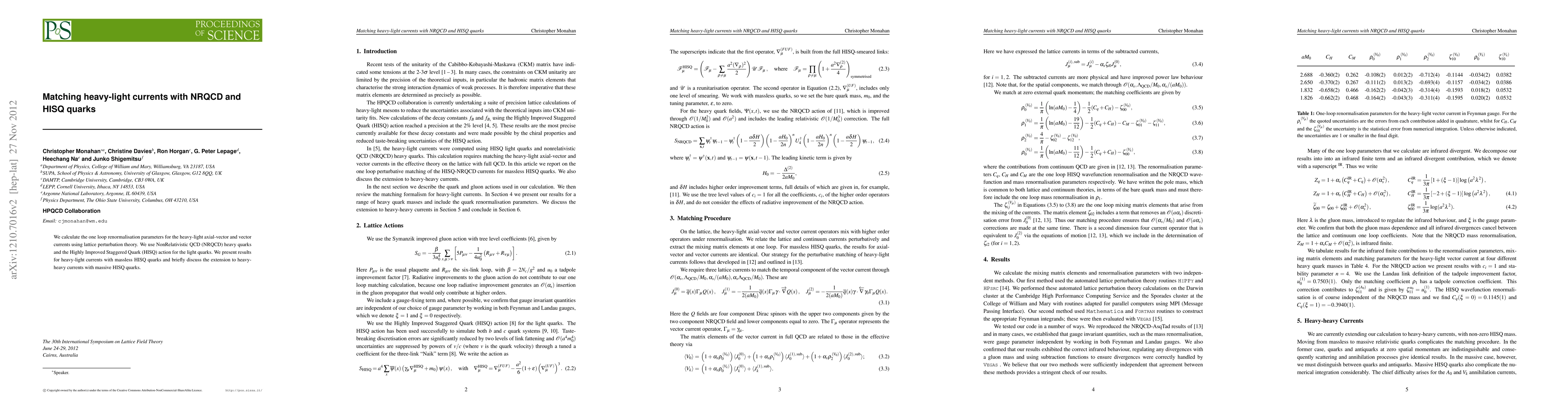 The paper presents a detailed calculation of one-loop renormalization parameters for heavy-light currents using NRQCD and HISQ quarks, employing lattice perturbation theory and two independent computational methods.