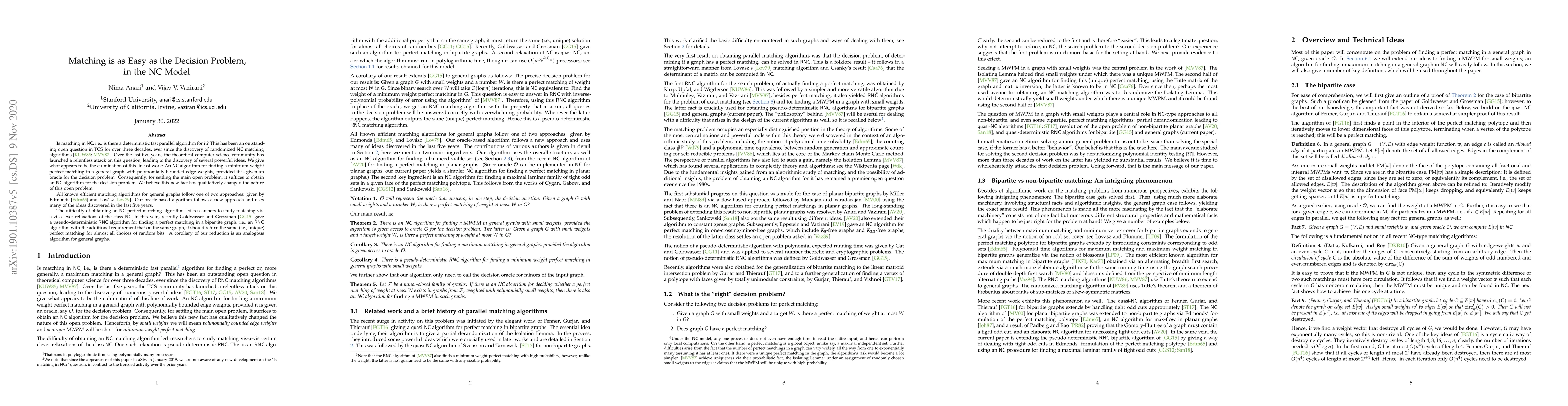 This paper presents an NC algorithm for finding a minimum-weight perfect matching in a general graph, provided an oracle for the decision problem. It suggests that solving the decision problem in NC could settle the longstanding open question of whether matching can be solved in NC, thus changing its nature.