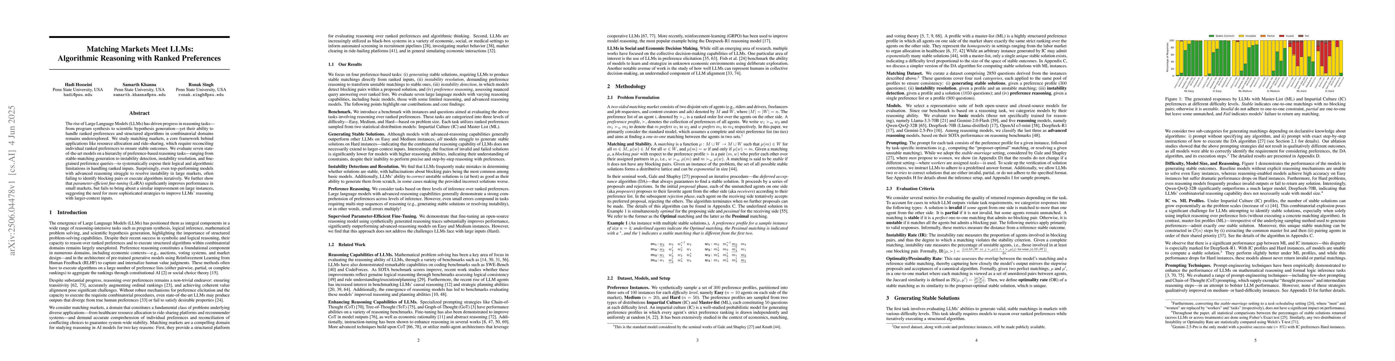 The paper presents a comprehensive evaluation of LLMs on preference-based reasoning tasks in matching markets, identifying their limitations and suggesting directions for future research.