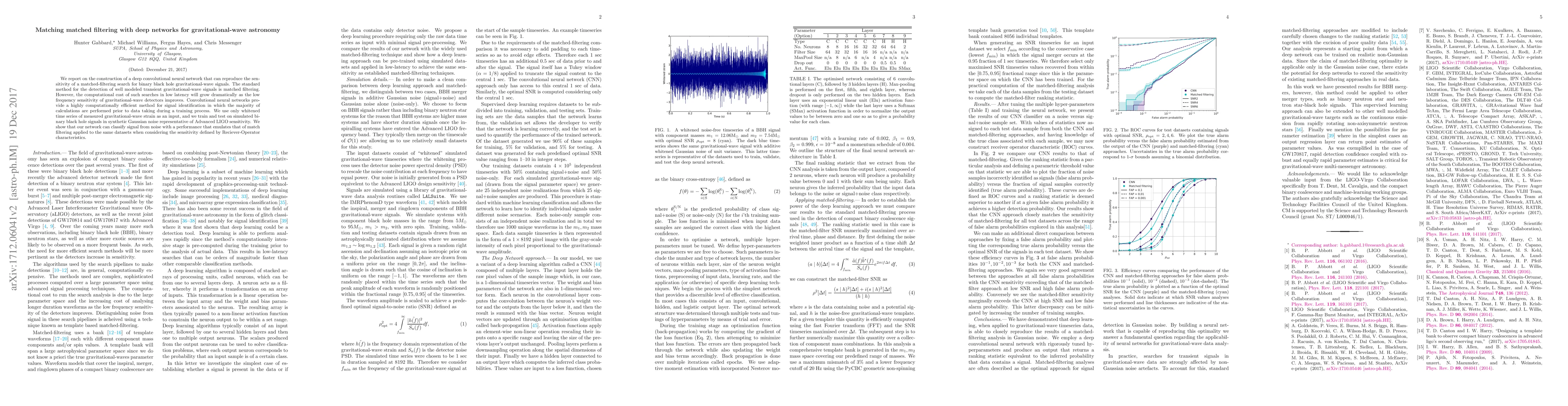 This paper constructs a deep convolutional neural network to replicate the sensitivity of matched filtering for detecting binary black hole gravitational-wave signals, demonstrating efficient signal classification comparable to traditional methods. The network is trained using simulated signals and noise, showing potential for reducing computational costs in future gravitational-wave detections.