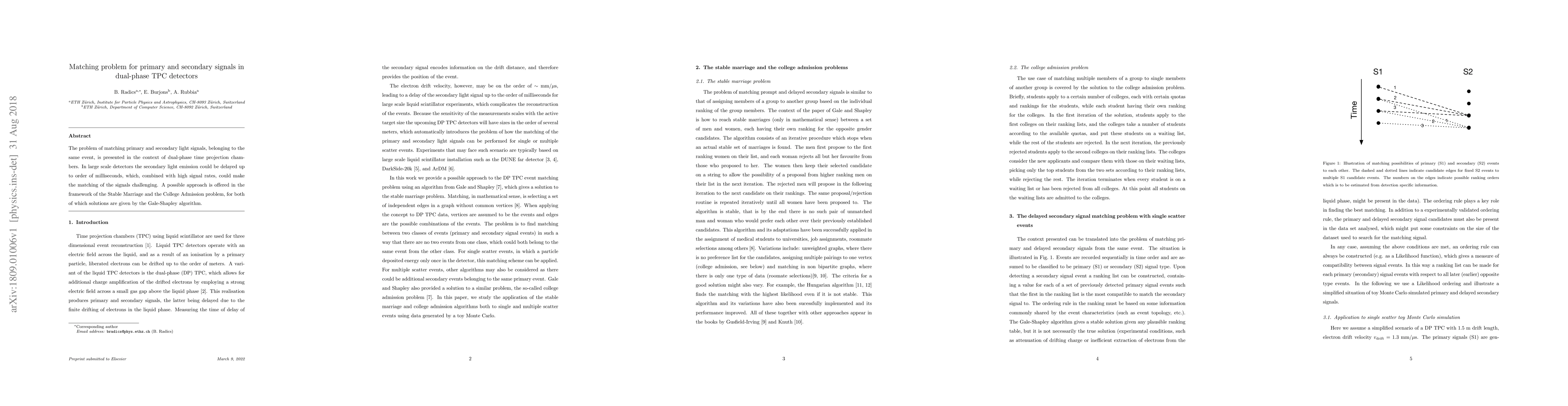 Researchers propose a solution to match primary and secondary light signals in dual-phase TPC detectors using the Gale-Shapley algorithm, addressing challenges posed by delayed secondary emissions and high signal rates.