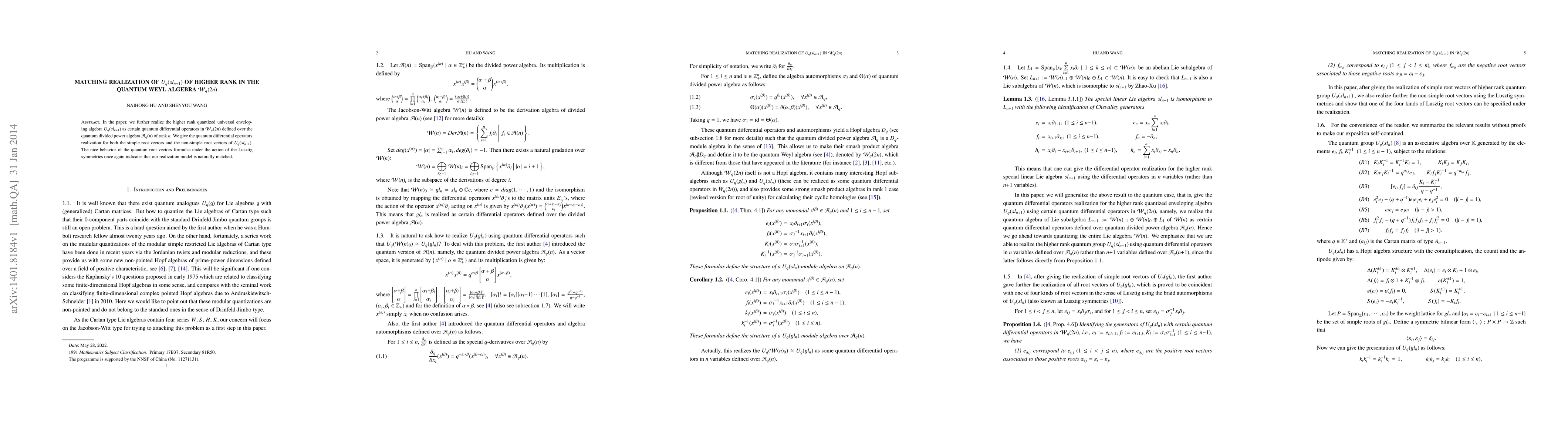 This paper realizes the higher rank quantized universal enveloping algebra $U_q(sl_{n+1})$ as quantum differential operators in $\mathcal W_q(2n)$, showing the behavior of quantum root vectors under Lusztig symmetries, indicating a naturally matched model.