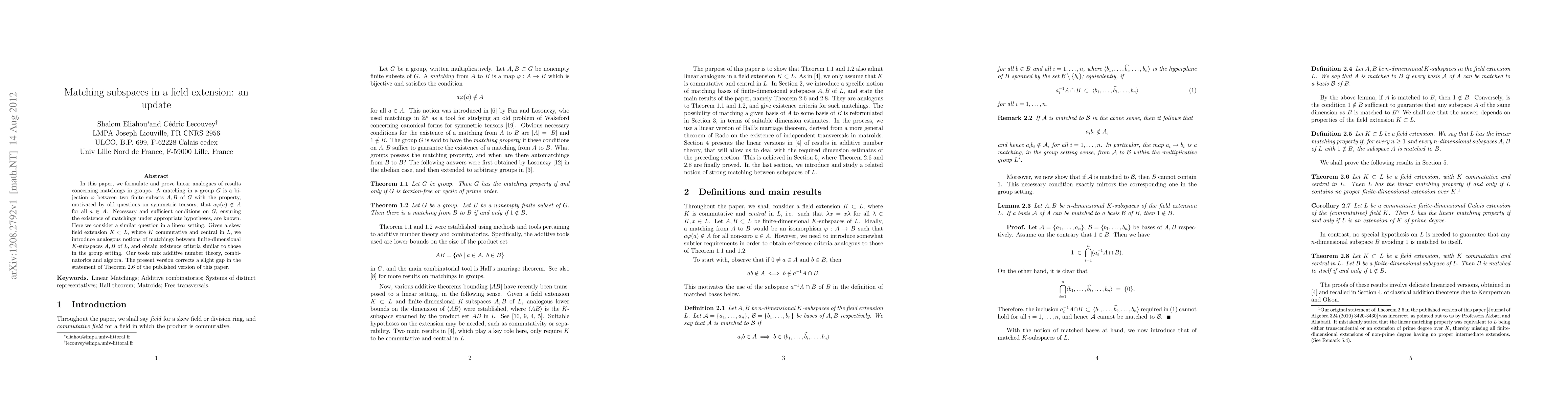 In this paper, we formulate and prove linear analogues of results concerning matchings in groups. A matching in a group G is a bijection f between two finite subsets A,B of G with the property, motivated by old questions on symmetric tensors, that the product af(a)does not belong to A for all a \in A. Necessary and sufficient conditions on G, ensuring the existence of matchings under appropriate hypotheses, are known. Here we consider a similar question in a linear setting. Given a skew field extension K \subset L, where K commutative and central in L, we introduce analogous notions of matchings between finite-dimensional K-subspaces A,B of L, and obtain existence criteria similar to those in the group setting. Our tools mix additive number theory, combinatorics and algebra.