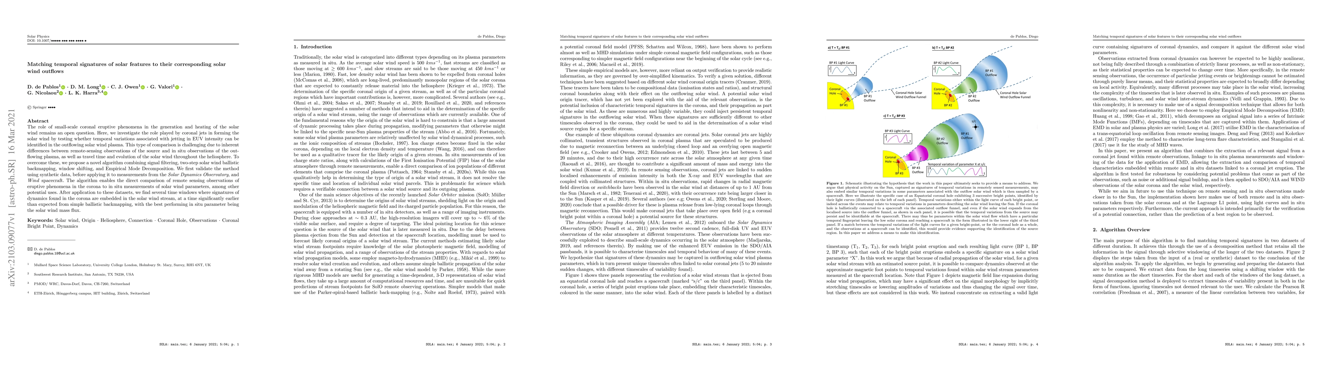 The role of small-scale coronal eruptive phenomena in the generation and heating of the solar wind remains an open question. Here, we investigate the role played by coronal jets in forming the solar wind by testing whether temporal variations associated with jetting in EUV intensity can be identified in the outflowing solar wind plasma. This type of comparison is challenging due to inherent differences between remote-sensing observations of the source and in situ observations of the outflowing plasma, as well as travel time and evolution of the solar wind throughout the heliosphere. To overcome these, we propose a novel algorithm combining signal filtering, two-step solar wind ballistic backmapping, window shifting, and Empirical Mode Decomposition. We first validate the method using synthetic data, before applying it to measurements from the Solar Dynamics Observatory, and Wind spacecraft. The algorithm enables the direct comparison of remote sensing observations of eruptive phenomena in the corona to in situ measurements of solar wind parameters, among other potential uses. After application to these datasets, we find several time windows where signatures of dynamics found in the corona are embedded in the solar wind stream, at a time significantly earlier than expected from simple ballistic backmapping, with the best performing in situ parameter being the solar wind mass flux.