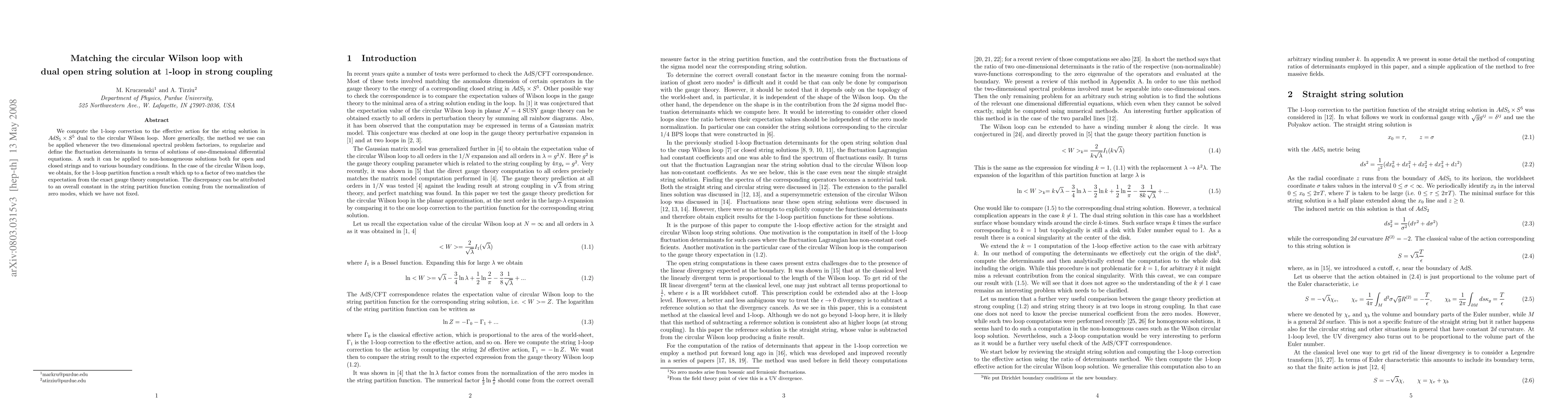 This paper computes the 1-loop correction to the effective action for the string dual to the circular Wilson loop in AdS_5 x S^5, showing a matching result with the gauge theory computation up to a factor of two. The method used can be applied to various string solutions and boundary conditions.