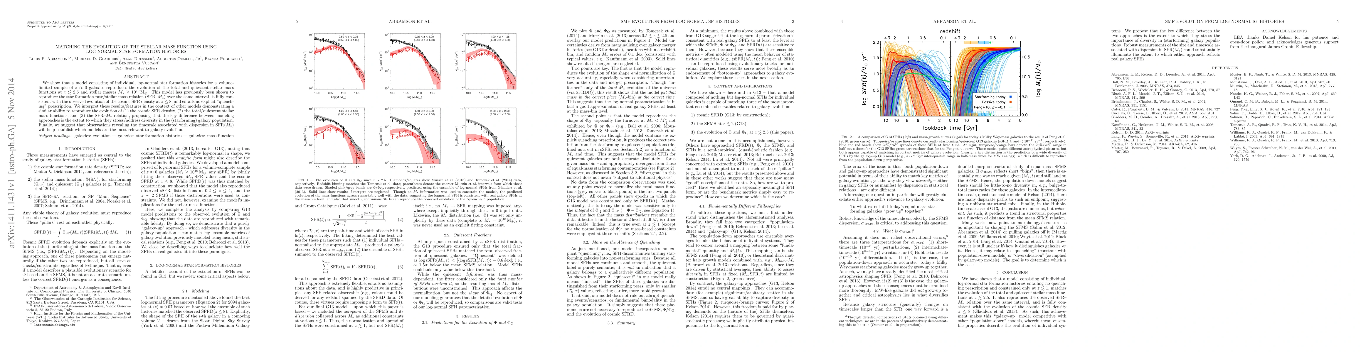This paper demonstrates that a model with log-normal star formation histories for nearby galaxies accurately reproduces the evolution of stellar mass functions and the star formation rate/stellar mass relation up to $z\lesssim2.5$. It suggests that the key to successful modeling lies in addressing diversity within the starforming galaxy population.