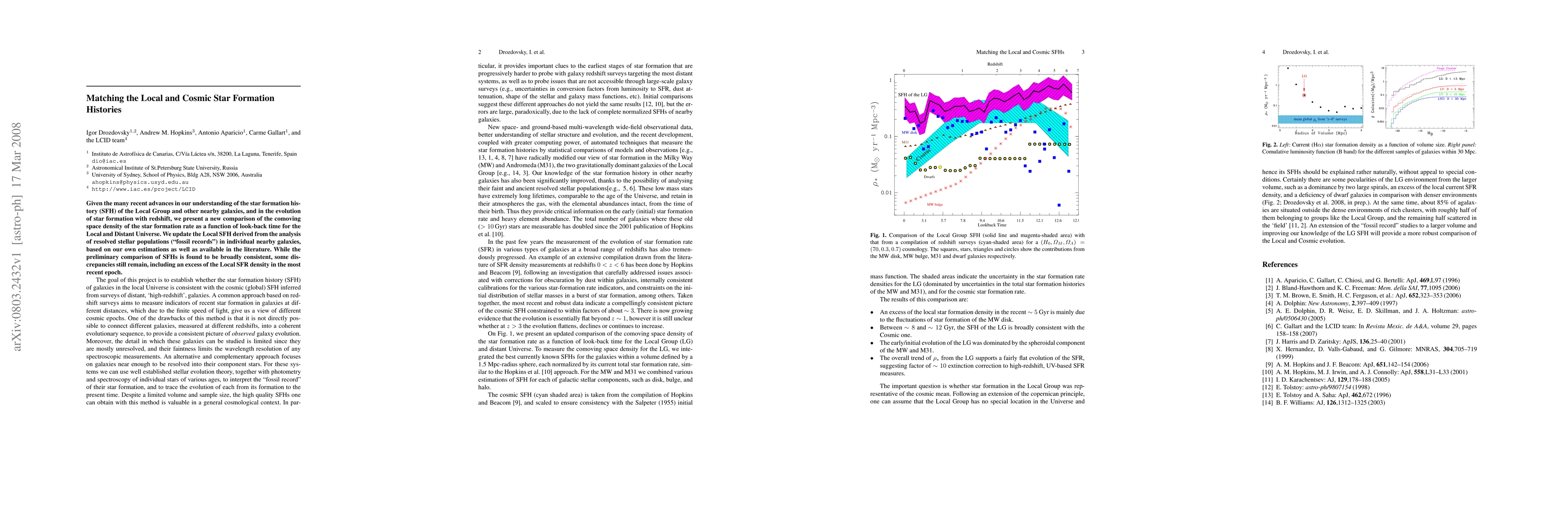 This paper compares the star formation histories of nearby galaxies in the Local Group with those of distant galaxies, revealing a broadly consistent trend but noting an excess in the recent star formation rate density in the Local Group. The study updates the local star formation history using resolved stellar populations.
