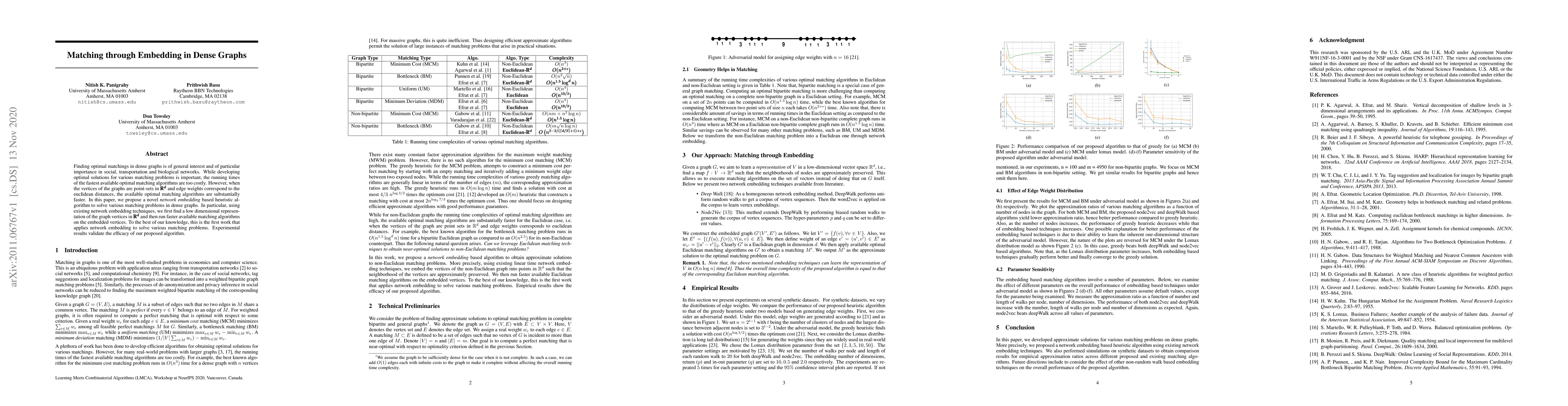 This paper introduces a novel heuristic algorithm that leverages network embedding to efficiently solve matching problems in dense graphs. By embedding graph vertices into a lower-dimensional space, the authors utilize faster matching algorithms on the embedded points, significantly reducing computational costs. Experimental results demonstrate the effectiveness of this approach.