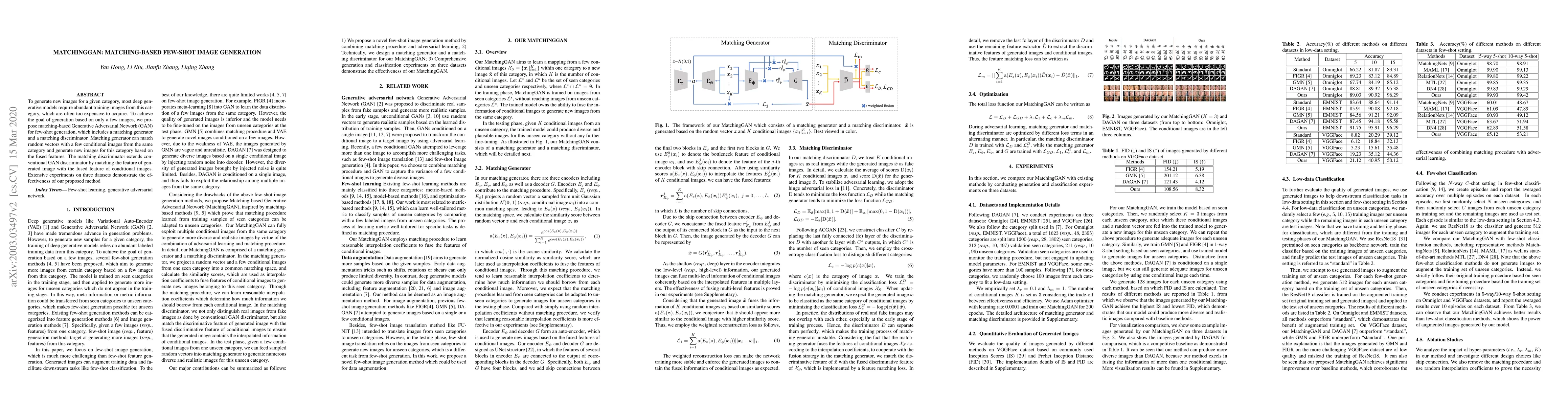 The MatchingGAN model proposes a matching-based GAN for few-shot image generation, utilizing a matching generator and discriminator to create new images from limited training samples. Experiments show its effectiveness in generating new images based on only a few examples from a given category.