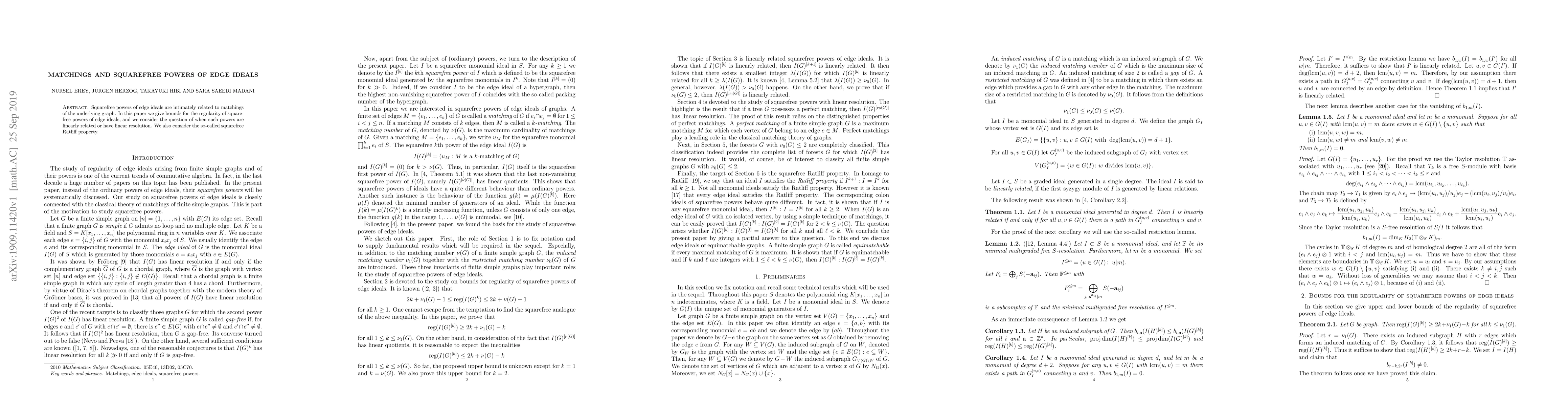 The paper advances the theory by establishing connections between matchings in graphs and the algebraic properties of squarefree powers of edge ideals, providing new insights into their regularity and resolution.