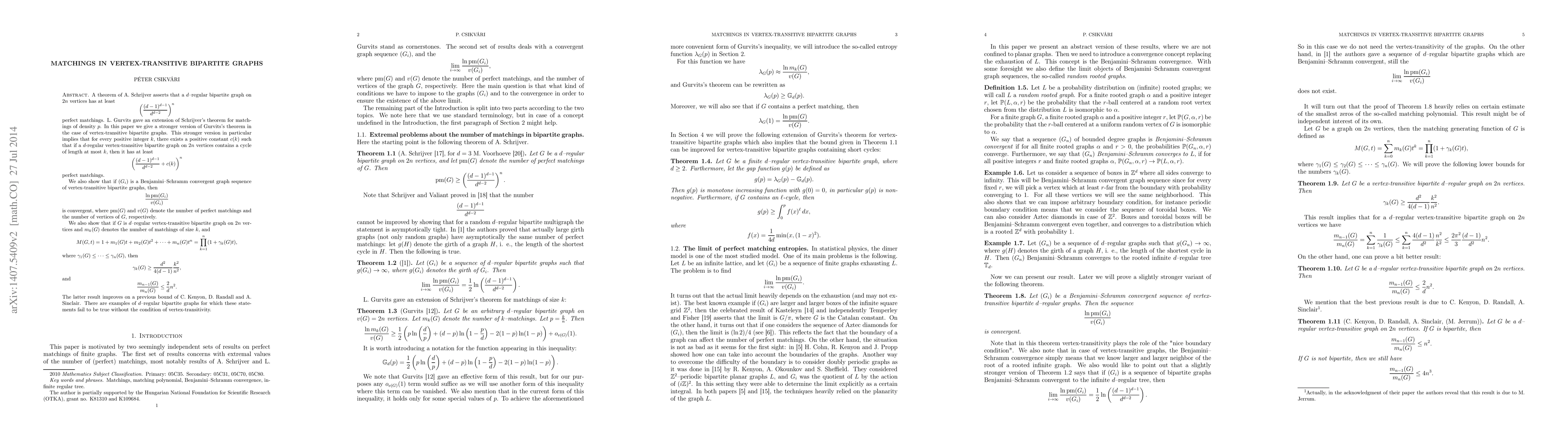 This paper extends Schrijver's theorem on perfect matchings in $d$-regular bipartite graphs to vertex-transitive cases, showing stronger bounds and improving previous results. It also proves convergence properties for sequences of vertex-transitive bipartite graphs and provides new lower bounds on the eigenvalues of the adjacency matrix of such graphs.