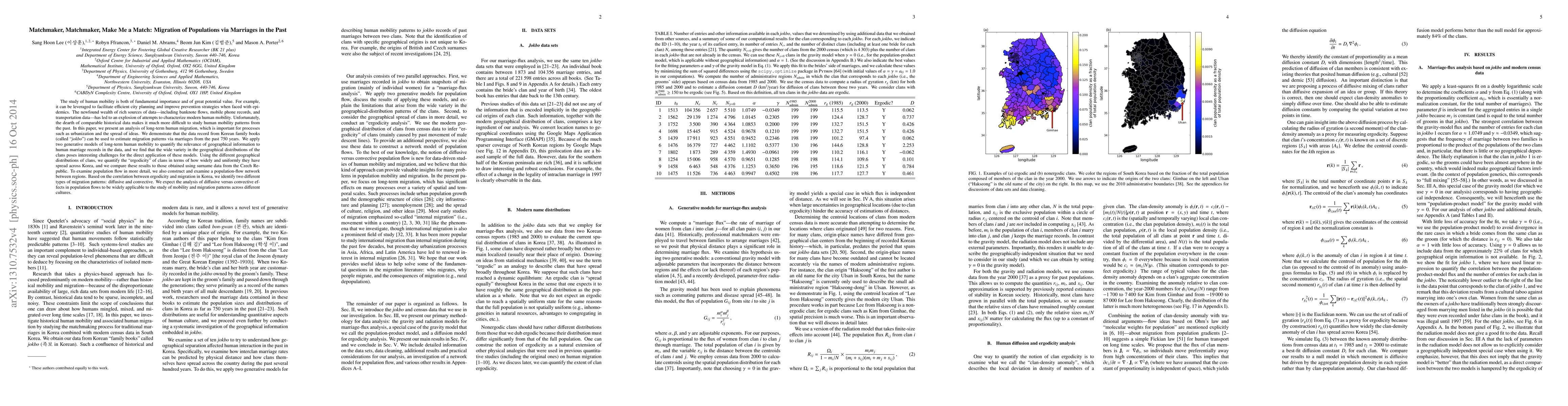 The study of human mobility is both of fundamental importance and of great potential value. For example, it can be leveraged to facilitate efficient city planning and improve prevention strategies when faced with epidemics. The newfound wealth of rich sources of data---including banknote flows, mobile phone records, and transportation data---has led to an explosion of attempts to characterize modern human mobility. Unfortunately, the dearth of comparable historical data makes it much more difficult to study human mobility patterns from the past. In this paper, we present an analysis of long-term human migration, which is important for processes such as urbanization and the spread of ideas. We demonstrate that the data record from Korean family books (called "jokbo") can be used to estimate migration patterns via marriages from the past 750 years. We apply two generative models of long-term human mobility to quantify the relevance of geographical information to human marriage records in the data, and we find that the wide variety in the geographical distributions of the clans poses interesting challenges for the direct application of these models. Using the different geographical distributions of clans, we quantify the "ergodicity" of clans in terms of how widely and uniformly they have spread across Korea, and we compare these results to those obtained using surname data from the Czech Republic. To examine population flow in more detail, we also construct and examine a population-flow network between regions. Based on the correlation between ergodicity and migration in Korea, we identify two different types of migration patterns: diffusive and convective. We expect the analysis of diffusive versus convective effects in population flows to be widely applicable to the study of mobility and migration patterns across different cultures.
