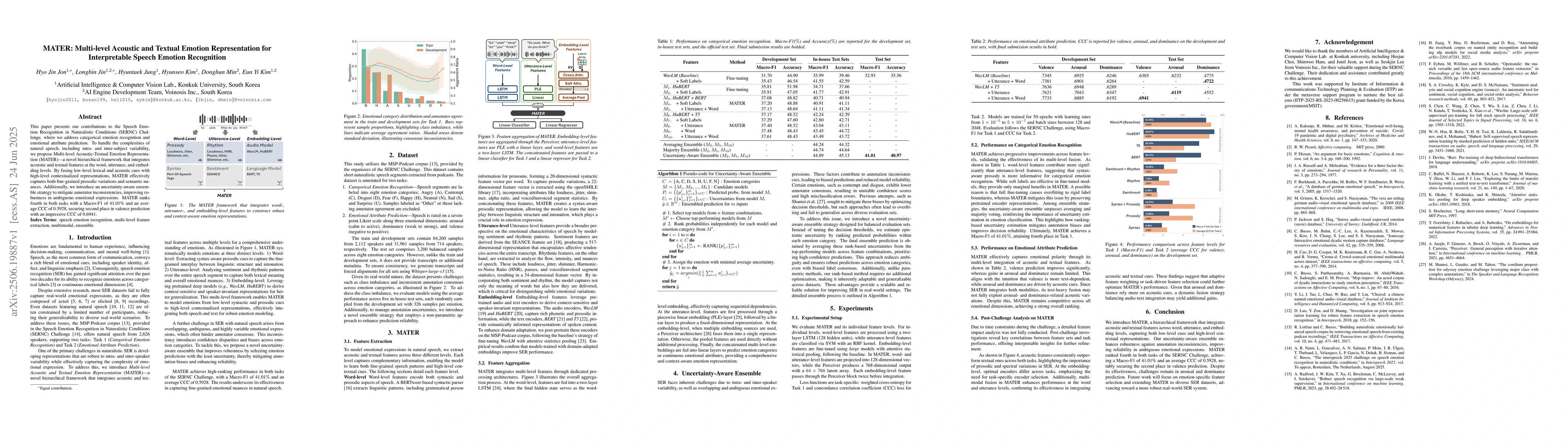 This paper presents our contributions to the Speech Emotion Recognition in Naturalistic Conditions (SERNC) Challenge, where we address categorical emotion recognition and emotional attribute prediction. To handle the complexities of natural speech, including intra- and inter-subject variability, we propose Multi-level Acoustic-Textual Emotion Representation (MATER), a novel hierarchical framework that integrates acoustic and textual features at the word, utterance, and embedding levels. By fusing low-level lexical and acoustic cues with high-level contextualized representations, MATER effectively captures both fine-grained prosodic variations and semantic nuances. Additionally, we introduce an uncertainty-aware ensemble strategy to mitigate annotator inconsistencies, improving robustness in ambiguous emotional expressions. MATER ranks fourth in both tasks with a Macro-F1 of 41.01% and an average CCC of 0.5928, securing second place in valence prediction with an impressive CCC of 0.6941.