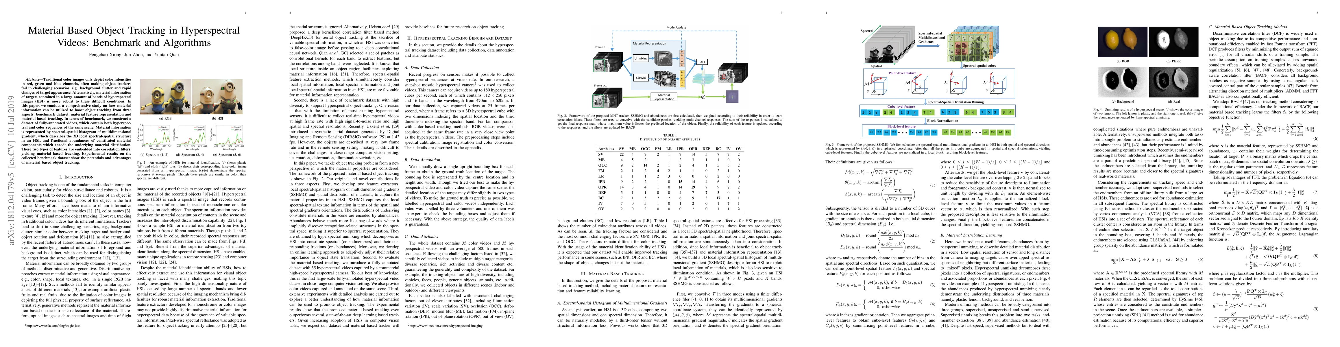 This paper investigates the use of material information from hyperspectral images to enhance object tracking in challenging scenarios, presenting a new benchmark dataset and algorithms that utilize spectral-spatial histograms and fractional abundances for robust tracking. Experimental results demonstrate the advantages of material-based tracking over traditional methods.