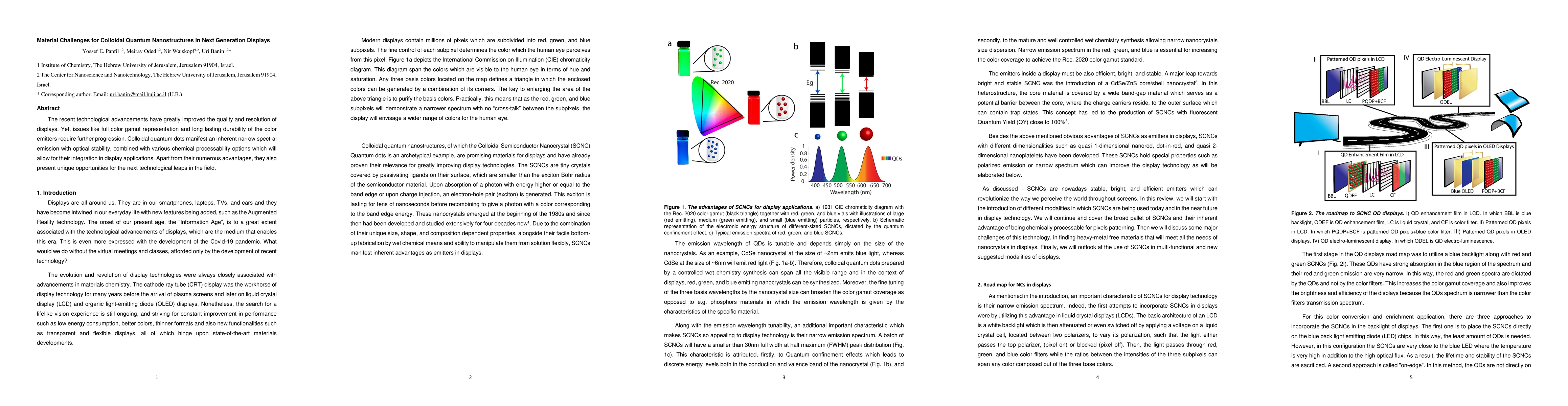 This paper discusses the potential of colloidal quantum dots to enhance next-generation displays through their narrow spectral emission and chemical processability, while also addressing the material challenges that need to be overcome for full color representation and durability.