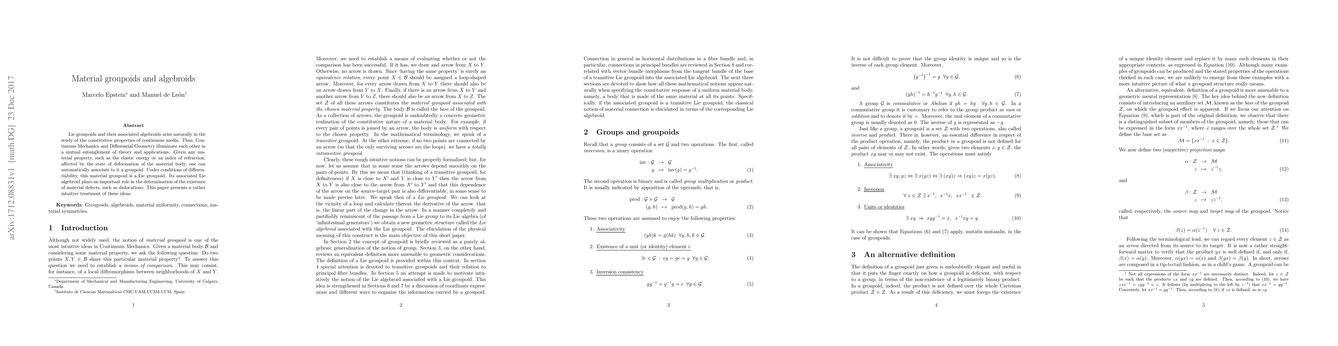 Researchers link material properties to groupoids, which help determine the existence of defects like dislocations in continuous media. This work integrates concepts from Continuum Mechanics and Differential Geometry for a deeper understanding of material behavior.