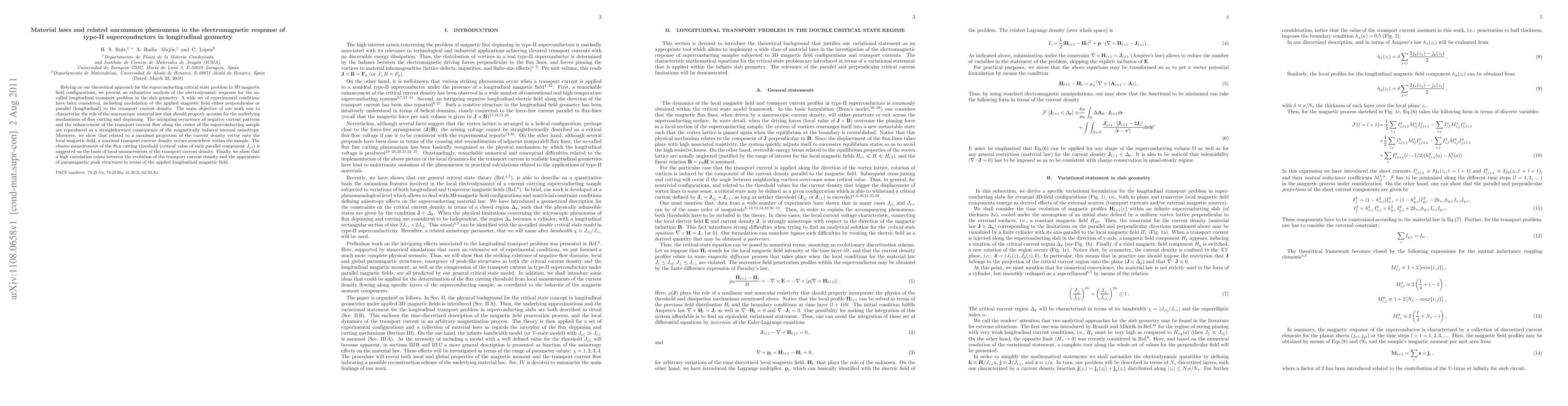 Relying on our theoretical approach for the superconducting critical state problem in 3D magnetic field configurations, we present an exhaustive analysis of the electrodynamic response for the so-called longitudinal transport problem in the slab geometry. A wide set of experimental conditions have been considered, including modulation of the applied magnetic field either perpendicular or parallel (longitudinal) to the transport current density. The main objective of our work was to characterize the role of the macroscopic material law that should properly account for the underlying mechanisms of flux cutting and depinning. The intriguing occurrence of negative current patterns and the enhancement of the transport current flow along the center of the superconducting sample are reproduced as a straightforward consequence of the magnetically induced internal anisotropy. Moreover, we show that related to a maximal projection of the current density vector onto the local magnetic field, a maximal transport current density occurs somewhere within the sample. The elusive measurement of the flux cutting threshold (critical value of such parallel component $J_{c ||}$) is suggested on the basis of local measurements of the transport current density. Finally, we show that a high correlation exists between the evolution of the transport current density and the appearance of paramagnetic peak structures in terms of the applied longitudinal magnetic field.