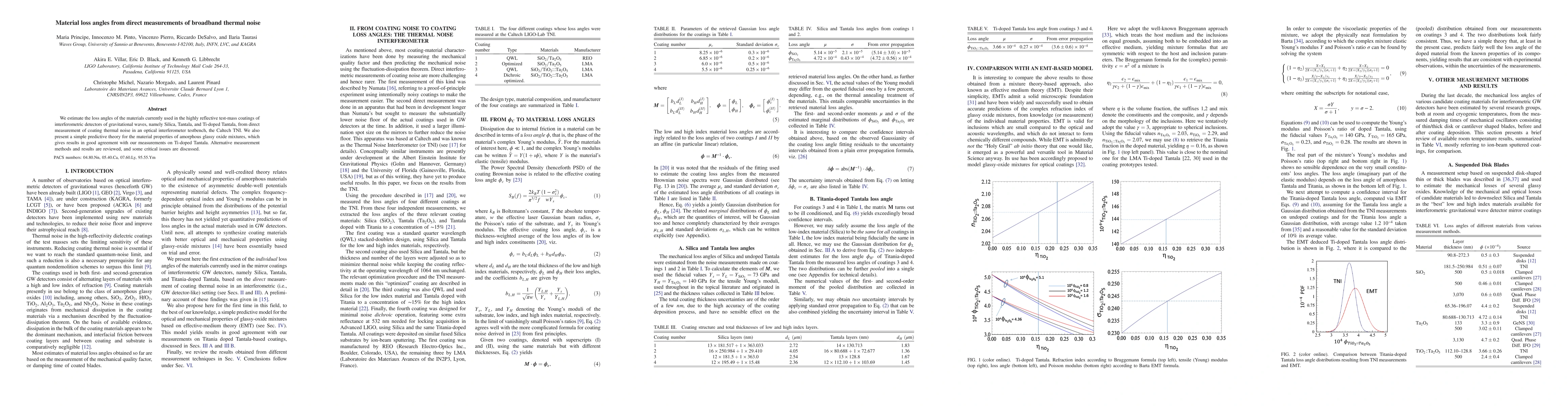 This paper estimates the loss angles of materials used in gravitational wave detectors through direct thermal noise measurements in an optical interferometer, focusing on Silica, Tantala, and Ti-doped Tantala. It also introduces a predictive theory for amorphous glassy oxide mixtures that aligns well with the findings on Ti-doped Tantala.