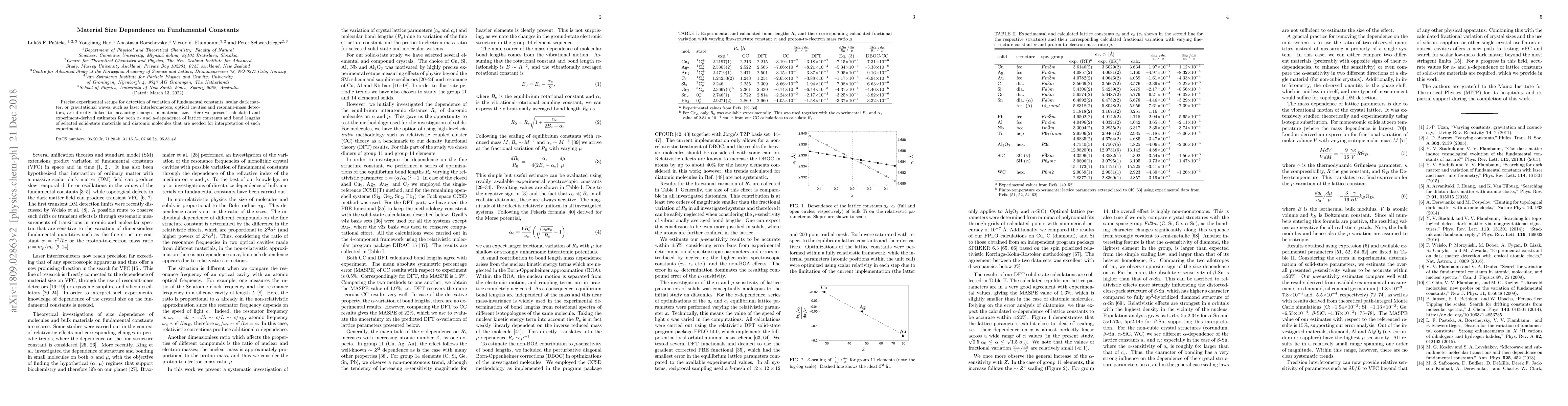 Precise experimental setups for detection of variation of fundamental constants, scalar dark matter, or gravitational waves, such as laser interferometers, optical cavities and resonant-mass detectors, are directly linked to measuring changes in material size. Here we present calculated and experiment-derived estimates for both $\alpha$- and $\mu$-dependence of lattice constants and bond lengths of selected solid-state materials and diatomic molecules that are needed for interpretation of such experiments.