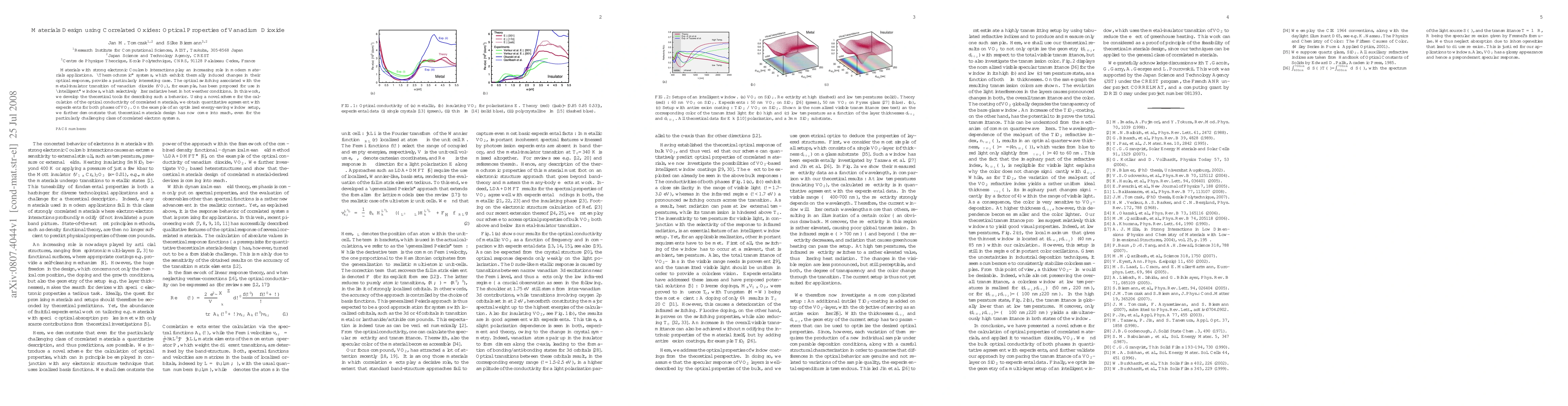 This paper develops theoretical tools to describe the optical properties of vanadium dioxide (VO2), focusing on its thermochromic behavior during metal-insulator transitions. The study achieves quantitative agreement with experimental data for both phases of VO2 and demonstrates the feasibility of theoretical materials design for energy-efficient "intelligent" windows.
