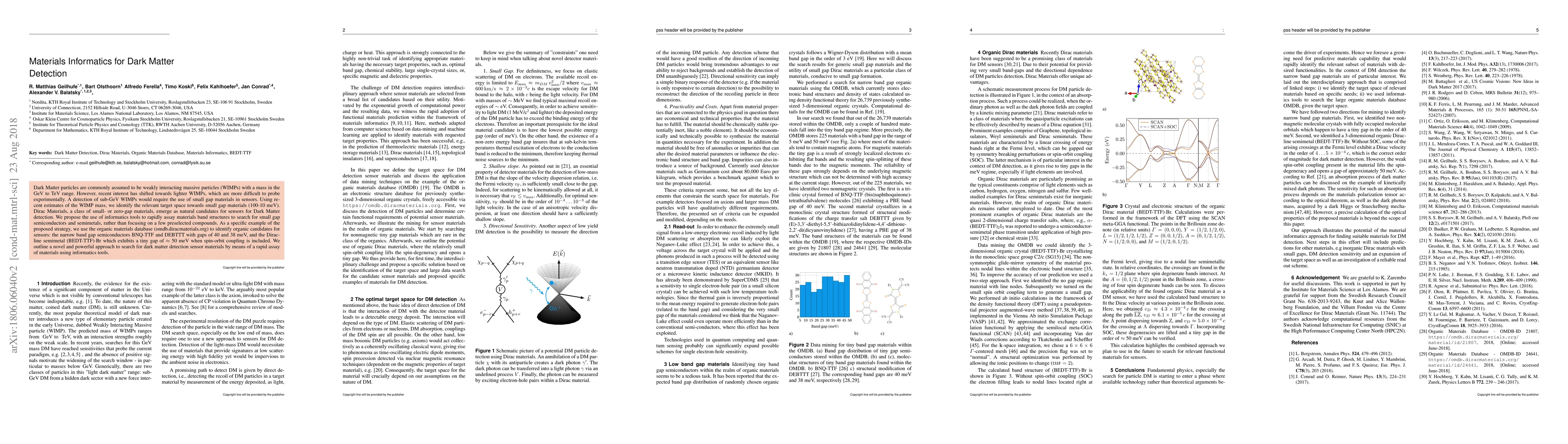 Dark Matter particles are commonly assumed to be weakly interacting massive particles (WIMPs) with a mass in the GeV to TeV range. However, recent interest has shifted towards lighter WIMPs, which are more difficult to probe experimentally. A detection of sub-GeV WIMPs would require the use of small gap materials in sensors. Using recent estimates of the WIMP mass, we identify the relevant target space towards small gap materials (100-10 meV). Dirac Materials, a class of small- or zero-gap materials, emerge as natural candidates for sensors for Dark Matter detection. We propose the use of informatics tools to rapidly assay materials band structures to search for small gap semiconductors and semimetals, rather than focusing on a few preselected compounds. As a specific example of the proposed strategy, we use the organic materials database (omdb.diracmaterials.org) to identify organic candidates for sensors: the narrow band gap semiconductors BNQ-TTF and DEBTTT with gaps of 40 and 38 meV, and the Dirac-line semimetal (BEDT-TTF)$\cdot$Br which exhibits a tiny gap of $\approx$ 50 meV when spin-orbit coupling is included. We outline a novel and powerful approach to search for dark matter detection sensor materials by means of a rapid assay of materials using informatics tools.
