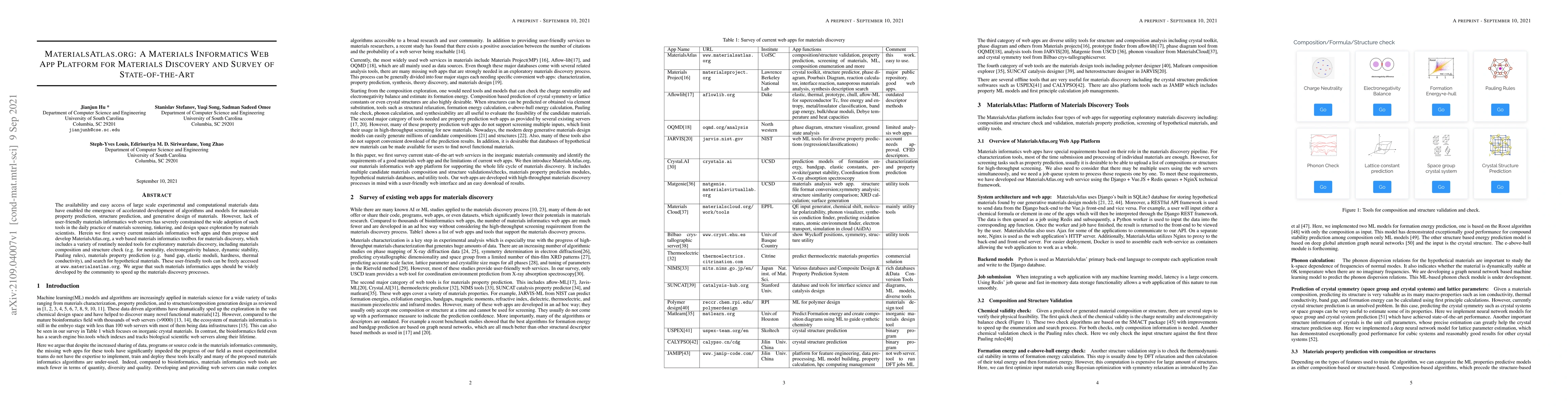 MaterialsAtlas.org is a newly developed web app platform offering user-friendly tools for materials discovery, including composition and structure checks, property predictions, and hypothetical material searches. The platform aims to accelerate materials discovery and promote wider adoption in materials science.