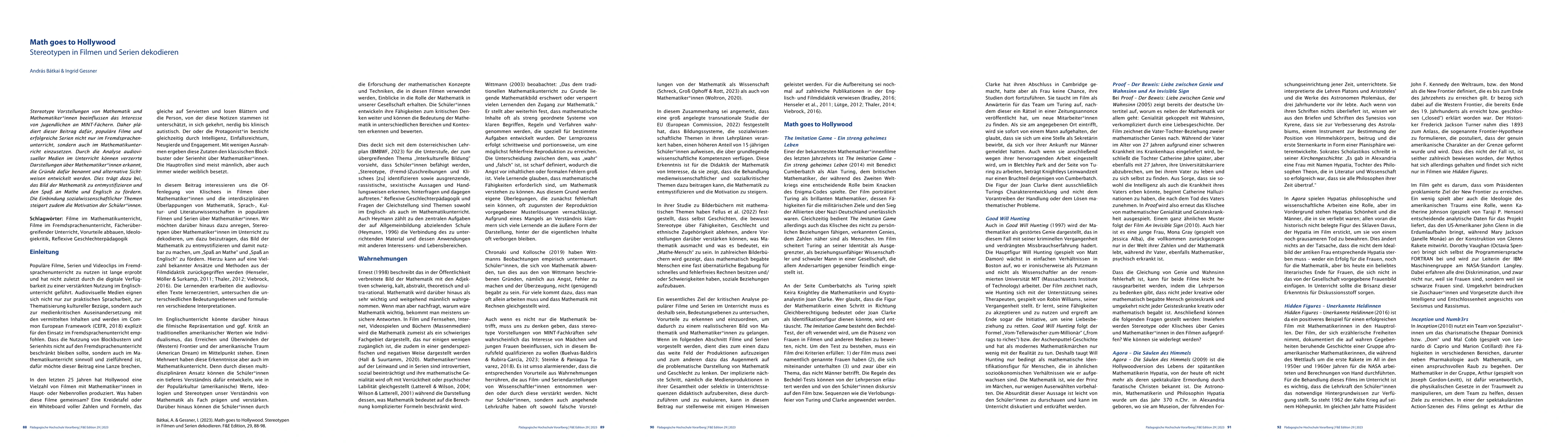 Stereotype Vorstellungen von Mathematik und Mathematiker*innen beeinflussen das Interesse von Jugendlichen an MINT-F\"achern. Daher pl\"adiert dieser Beitrag daf\"ur, popul\"are Filme und erfolgreiche Serien nicht nur im Fremdsprachenunterricht, sondern auch im Mathematikunterricht einzusetzen. Durch die Analyse audiovisueller Medien im Unterricht k\"onnen verzerrte Darstellungen \"uber Mathematiker*innen erkannt, die Gr\"unde daf\"ur benannt und alternative Sichtweisen entwickelt werden. Dies tr\"agt dazu bei, das Bild der Mathematik zu entmystifizieren und den Spa{\ss} an Mathe und Englisch zu f\"ordern. Die Einbindung sozialwissenschaftlicher Themen steigert zudem die Motivation der Sch\"uler*innen.