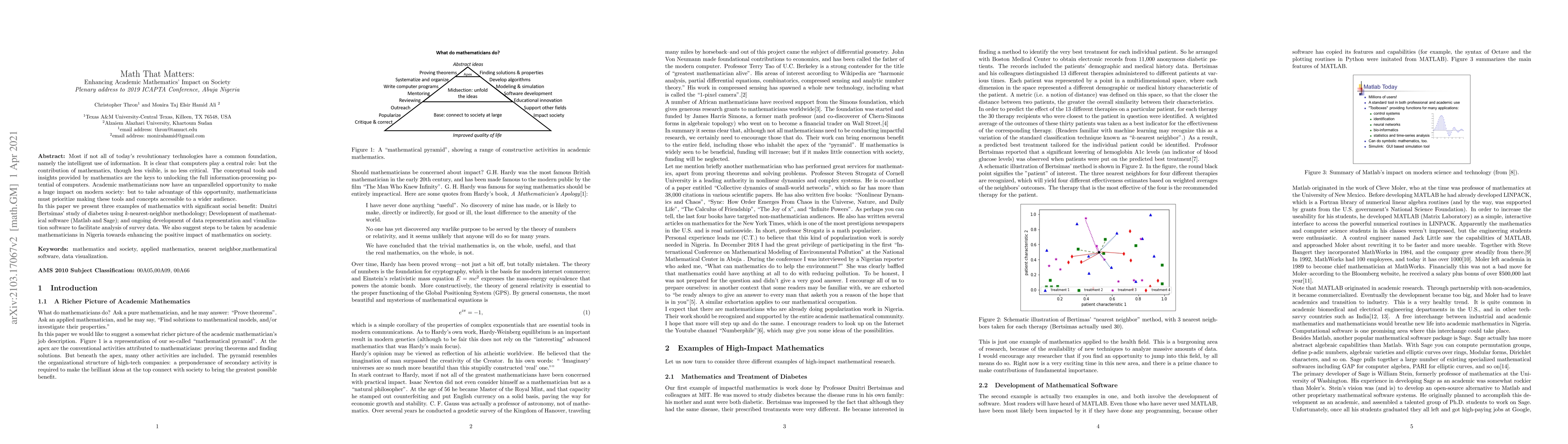 Most if not all of today's revolutionary technologies have a common foundation, namely the intelligent use of information. It is clear that computers play a central role: but the contribution of mathematics, though less visible, is no less critical. The conceptual tools and insights provided by mathematics are the keys to unlocking the full information-processing potential of computers. Academic mathematicians now have an unparalleled opportunity to make a huge impact on modern society: but to take advantage of this opportunity, mathematicians must prioritize making these tools and concepts accessible to a wider audience. In this paper we present three examples of mathematics with significant social benefit: Dmitri Bertsimas' study of diabetes using k-nearest-neighbor methodology; Development of mathematical software (MATLAB and Sage); and ongoing development of data representation and visualization software to facilitate analysis of survey data. We also suggest steps to be taken by academic mathematicians in Nigeria towards enhancing the positive impact of mathematics on society.